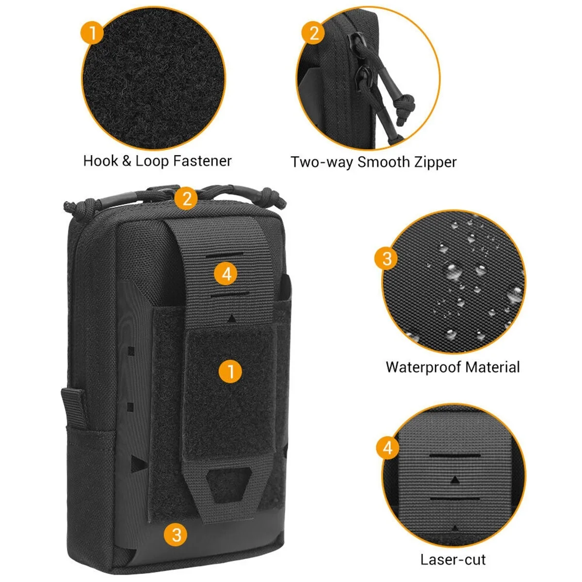 Multiusos: la parte frontal de las bolsas EDC Molle se puede colocar en su teléfono móvil, bolígrafo, llavero, suministros médicos o cualquier dispositivo necesario que necesite.