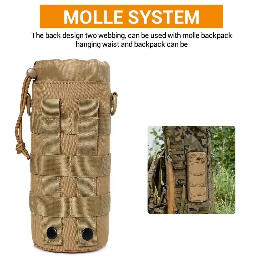 4: Sistema Molle: La bolsa táctica para botellas de agua es fácil de conectar con otros equipos Moller, fácil de reforzar, para evitar tirones o giros debido a la gravedad al caminar o trotar.