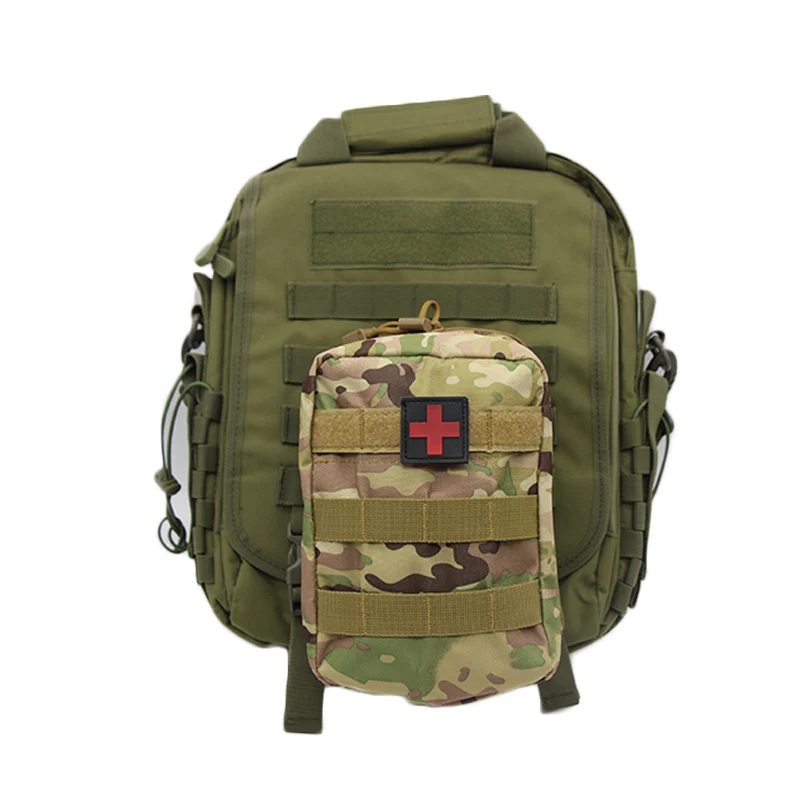 5. La bolsa incluye un parche de primeros auxilios gratuito en la web Molle, también puede colocar cualquier parche que tenga como bolsa táctica de primeros auxilios Molle, bolsa pequeña.