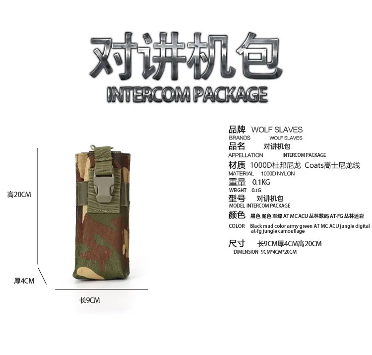 Tamaño pequeño, fácil de transportar, fácil de usarMaterial: nailon 1000DColor: Negro,OD,MC,AT,ACU,TAN,AT-FG,Woodland CamoTamaño: (L) 20 cm * (W) 9 cm * (H) 4 cm