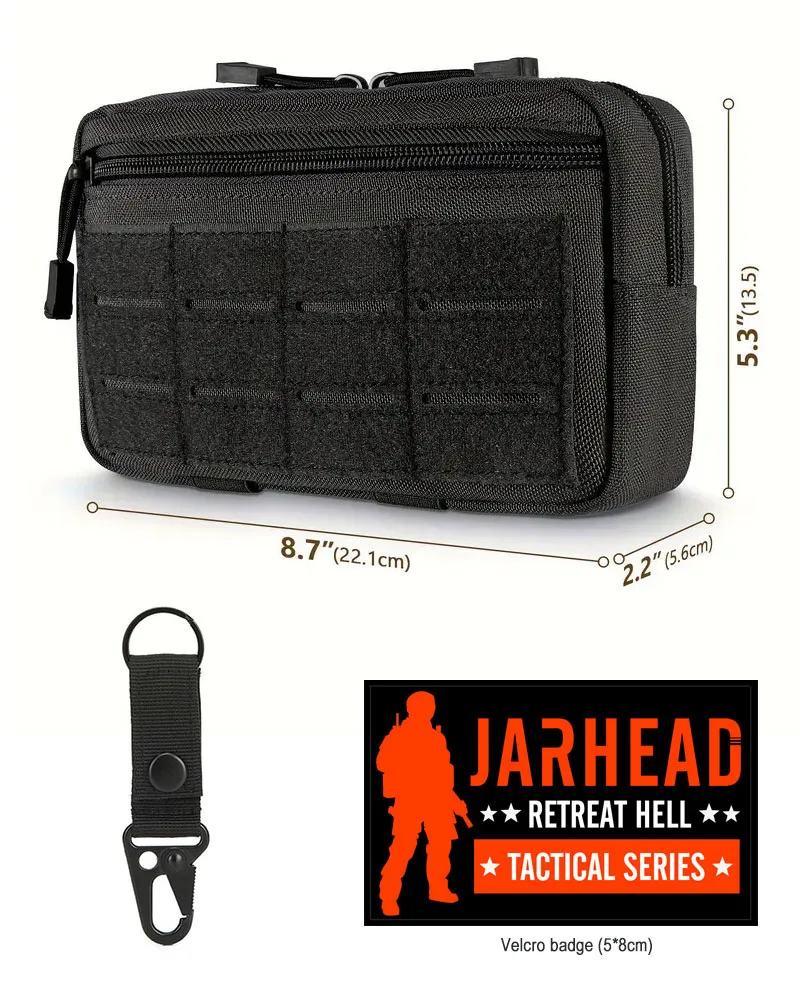 1.Construido con nailon de alta calidad con las características de fuerte, duradero, resistente al desgaste y al desgarro, tiene una larga vida útil.2.Accesorio exterior de cierre de nailon grueso que se utiliza para sujetar chalecos y otros equipos.3.Material resistente al agua que es increíblemente duradero.4. Con tamaño pequeño que es fácil de transportar.5.Cremallera diseñada para poner y quitar rápida y fácilmente6.Diseño especial con correas elásticas en el interior para inmovilizar objetos.7.Adecuado para acampar, hacer caminatas, pescar y otros deportes al aire libre, lo que sería un gran regalo para los entusiastas de los deportes al aire libre.EspecificacionesMaterial:Nylon de alta calidadColorUso: caza, escalada, pesca, ciclismo, camping, senderismo, aventura, viajes.Paquete incluido:1x riñonera para exteriores