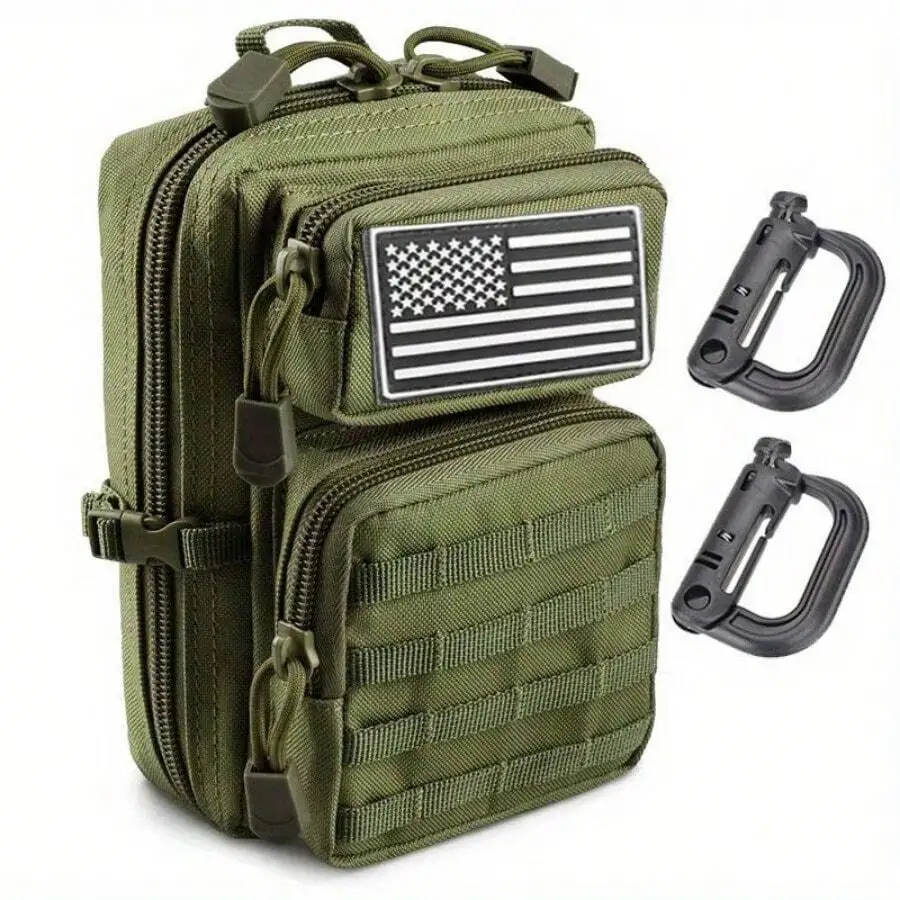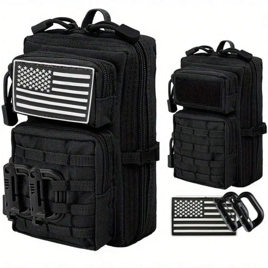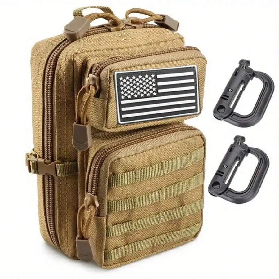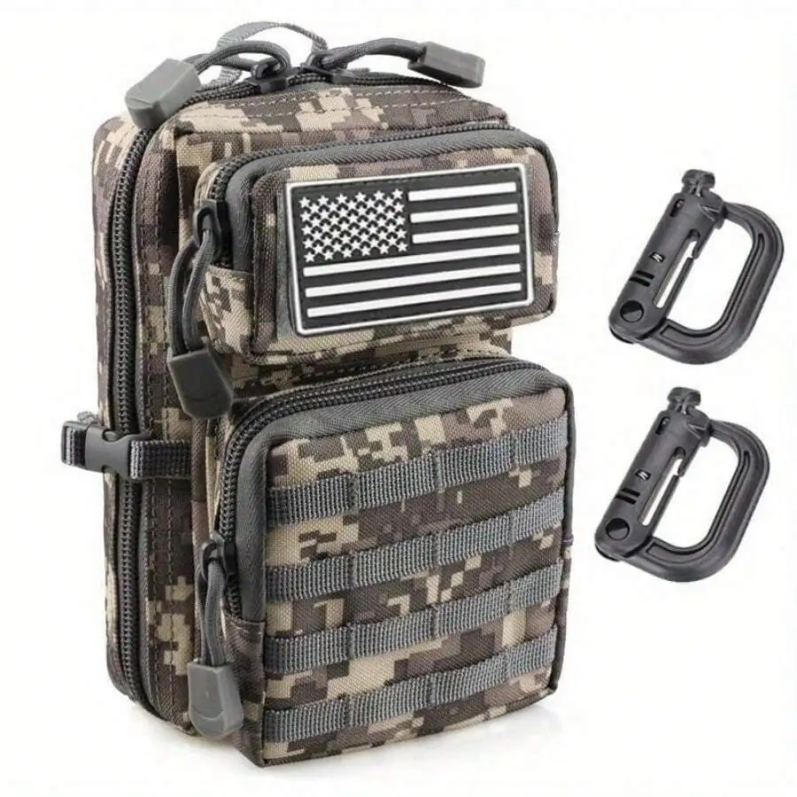 Característica Diseñada para entornos hostiles, esta bolsa y abrasión garantiza un rendimiento duradero durante aventuras al aire libre o uso táctico.Diseño táctico compatible con MOLLE Se fija fácilmente a equipos o cinturones a través de correas MOLLE, ofreciendo personalización modular para caza o configuraciones EDC. La organización liviana y compacta cuenta con 2 compartimentos con cremallera y divisores para almacenar de forma segura herramientas, teléfonos o elementos esenciales, ideal para un transporte minimalista sin volumen. Correa de cintura ajustable para comodidad durante todo el día Las correas de nailon transpirables con ajuste personalizable garantizan estabilidad durante caminatas, campamentos o viajes urbanos. Versatilidad en múltiples escenarios Perfecto para deportes al aire libre (senderismo/camping), misiones tácticas o uso diario como funda para teléfono, cinturón de utilidad o bolsa de viaje.