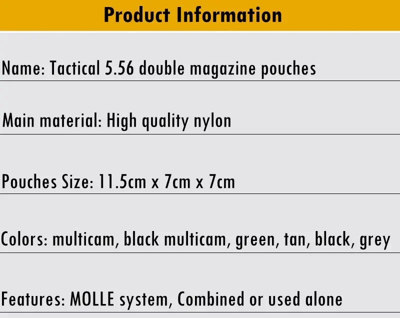 ●Nombre: Bolsas tácticas 5,56 para revistas dobles