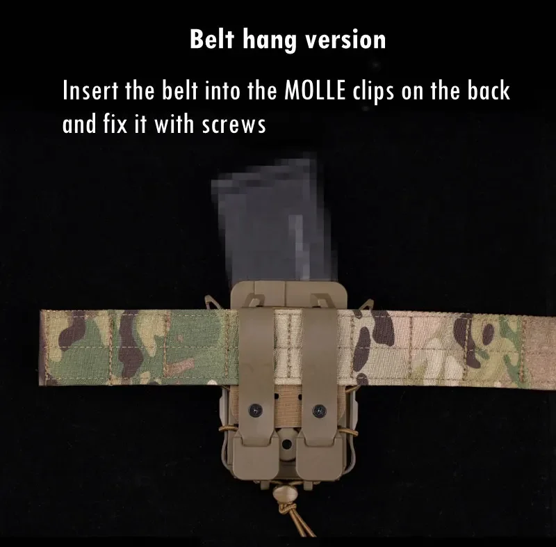 ●Versión para colgar el cinturón. Inserta el cinturón en los clips MOLLE en la parte posterior y fíjalo con tornillos.
