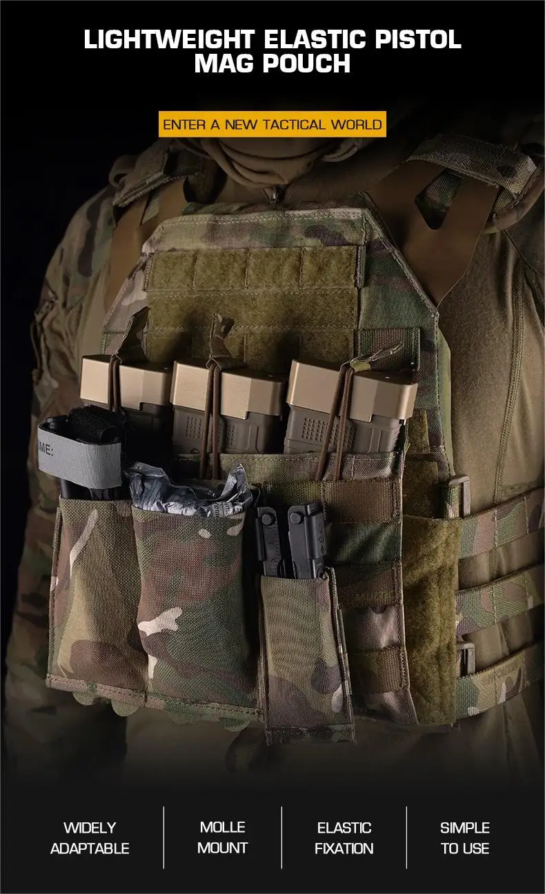 Bolsa táctica Molle doble para pistola, soporte rápido para revistas de pistola para revistas de 9mm.45.40, bolsa elástica ligera para pistola