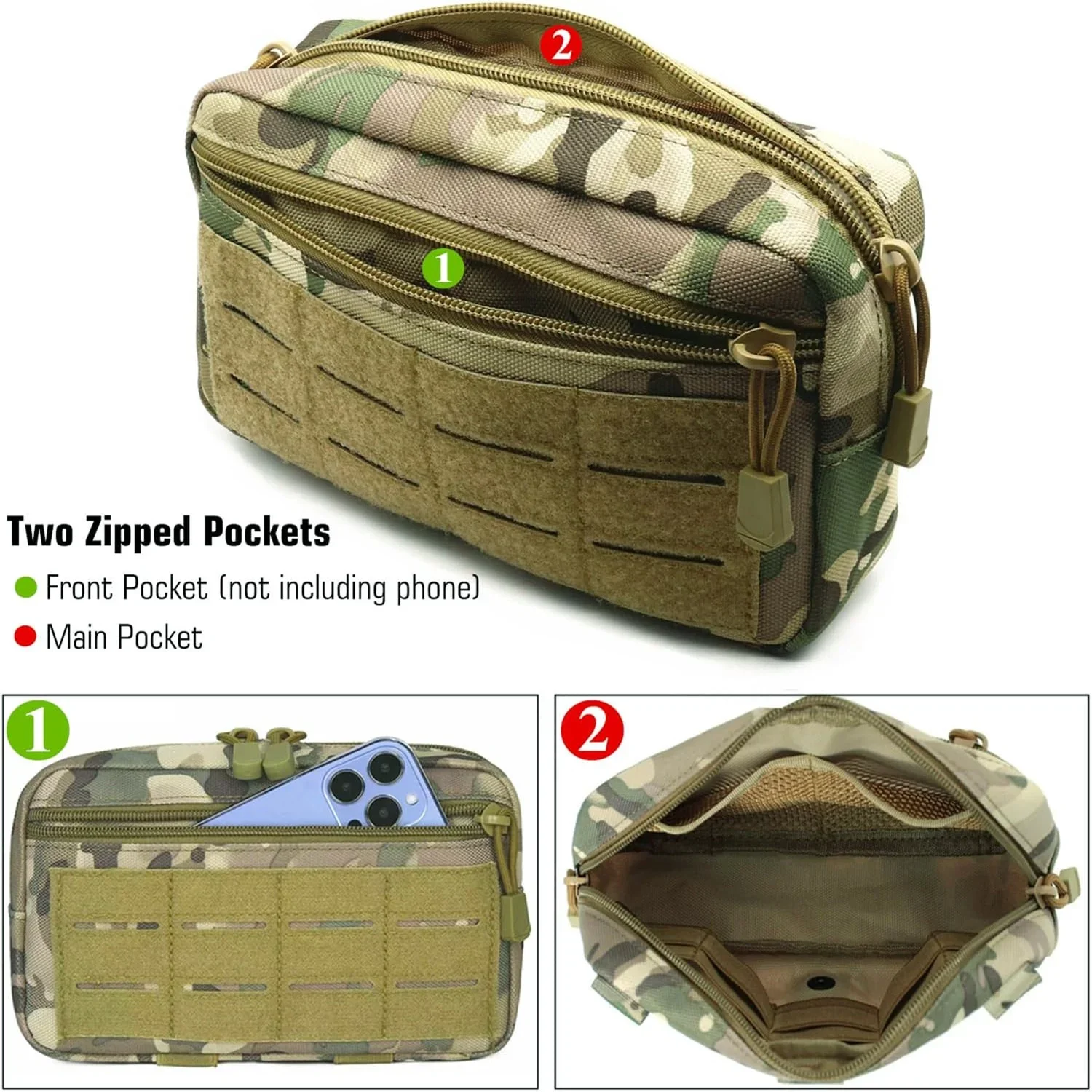 Bolsa táctica MOLLE EDC, bolsa administradora multiusos para caza al aire libre y senderismo, riñonera militar para mochila y cinturón