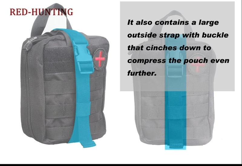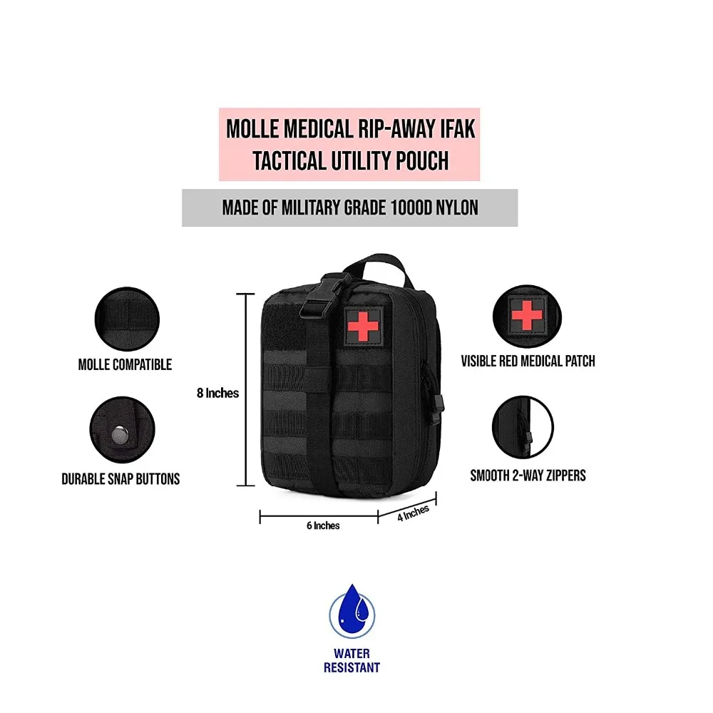 Parche de primeros auxilios incluido: se adhiere a la correa exterior de Velcro MOLLE para una identificación fácil.
