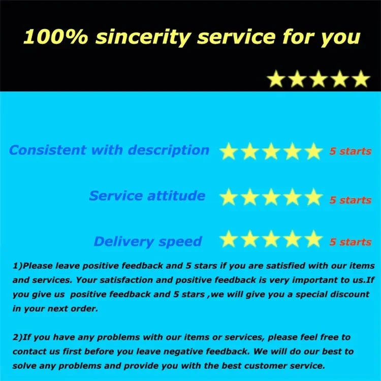 1) Si desea devolver o cambiar los artículos recibidos, puede contactarnos dentro de los 7 días posteriores a la recepción de su pedido.2) Los artículos devueltos deben mantenerse en su estado original. (Los gastos de envío y manipulación no son reembolsables, los defectos hechos por hombres no están garantizados, como rotos, rayados, etc.)