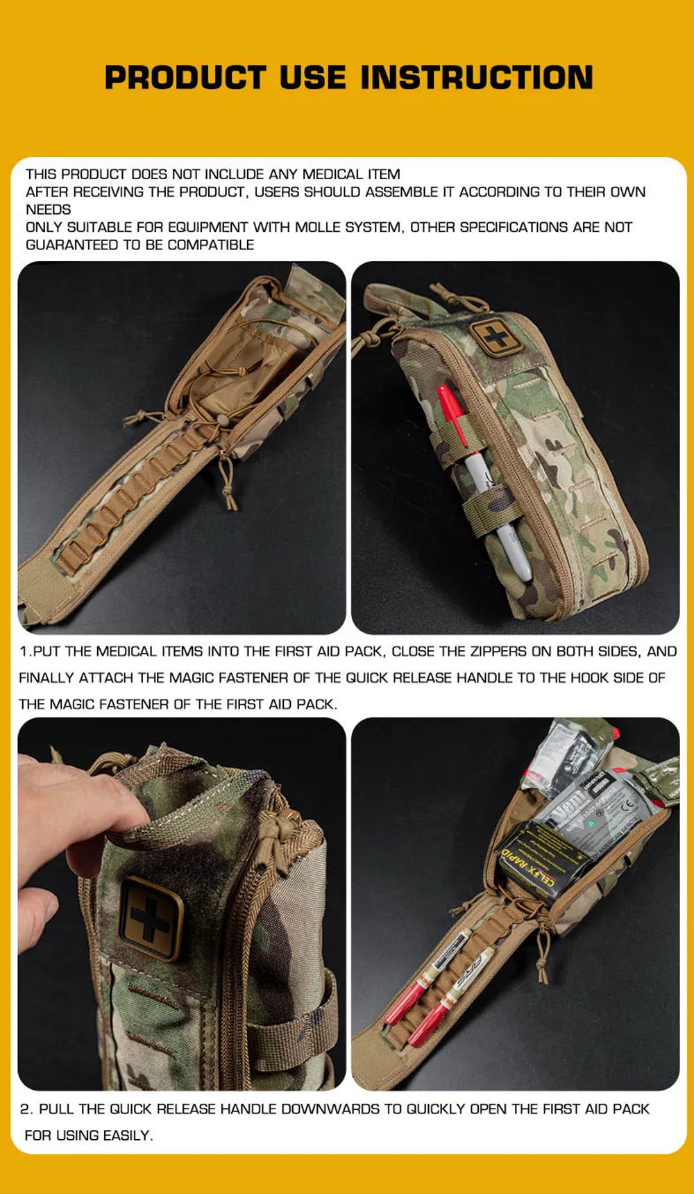 Bolsa táctica MOLLE EDC, botiquín de primeros auxilios, bolsa médica de respuesta rápida para chaleco de caza al aire libre, portador de placa/cinturón de cintura