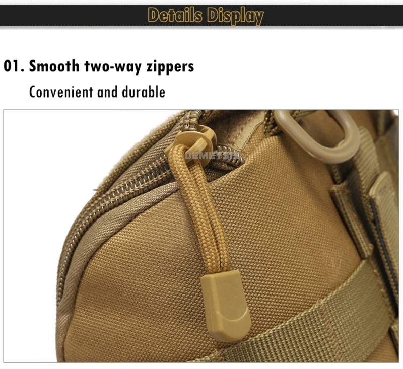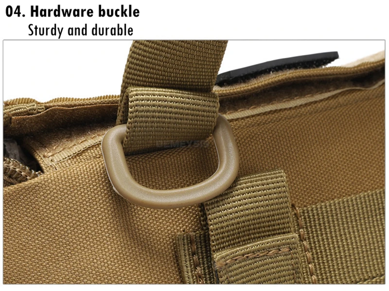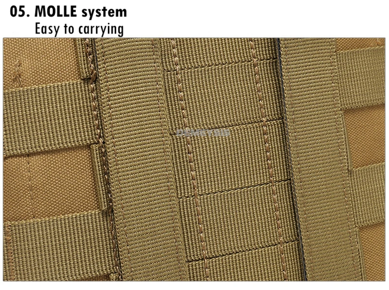 ● MOLLE compatible con 2 correas abotonadas a presión y costuras reforzadas en todos los puntos de tensión.