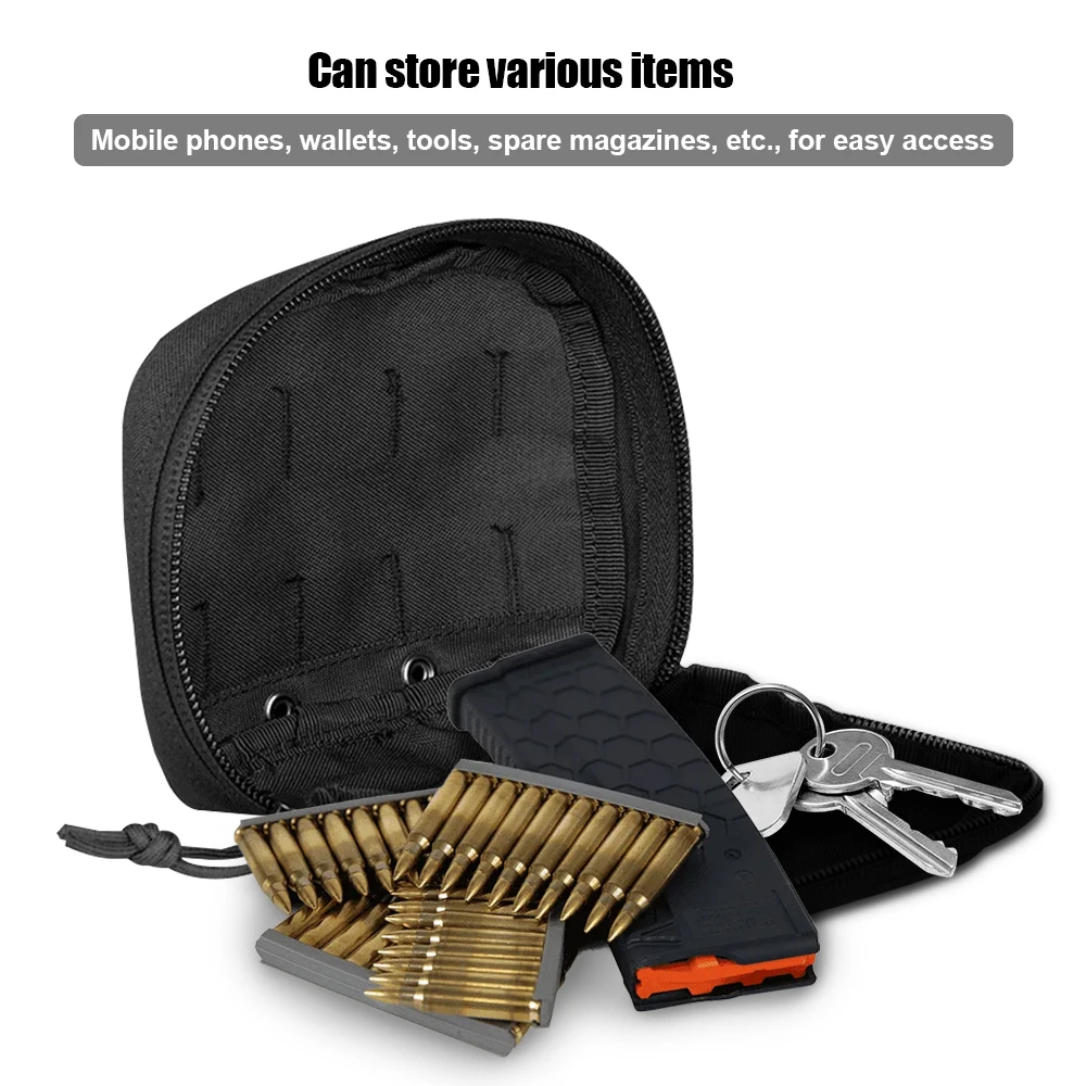 2.【Pequeño bolsillo utilitario con organización decente】 Úselo para llevar revistas, municiones, baterías, mini linternas, encendedores, cuchillos, bolígrafos, multiherramientas, kit de fuego, brújulas, dispositivos, cámaras de acción, unidades flash, auriculares, binoculares pequeños, voltee teléfono, reproductor de MP3, cinta adhesiva y más cuando esté caminando al aire libre, acampando, haciendo senderismo, fotografiando, cazando.Contiene pequeñas herramientas de limpieza a su alcance.También puedes convertirlo en un kit de reparación/costura de campo.Contiene muchos tipos pequeños de accesorios tácticos y todas las pequeñas cosas que quieras en el campo del airsoft.