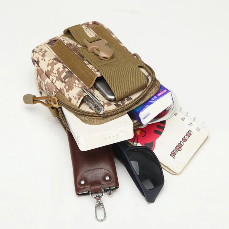 Descripción: 100% nuevo y de alta calidad La tela de alta calidad lo hace duradero, lo suficientemente fuerte para sus objetos de golpes, sacudidas, caídas, golpes, salpicaduras, etc. Se puede colgar en varios equipos con sistema Molle/PALS o cinturón El exterior es una bolsa con interruptor de hebilla, más conveniente para poner el teléfono, PDA, tarjeta de cámara, etc. Dos espacios de almacenamiento, uno grande principal y uno pequeño Perfecto para proteger tu teléfono cuando disfrutas de actividades al aire libre Lo mejor para llevar cosas personales, como tarjetas, PDA, teléfono móvil, monedas, llaves, etc. Muy conveniente y útil para ejercicios al aire libre como senderismo, camping, juegos de guerra. Este paquete multifuncional está diseñado para los amantes de las actividades al aire libre en running, trote, escalada, senderismo, ciclismo, etc. Se puede colgar en la cintura y en la bolsa o chaleco del sistema molle. Fácil de abrir y cerrar el bolsillo.