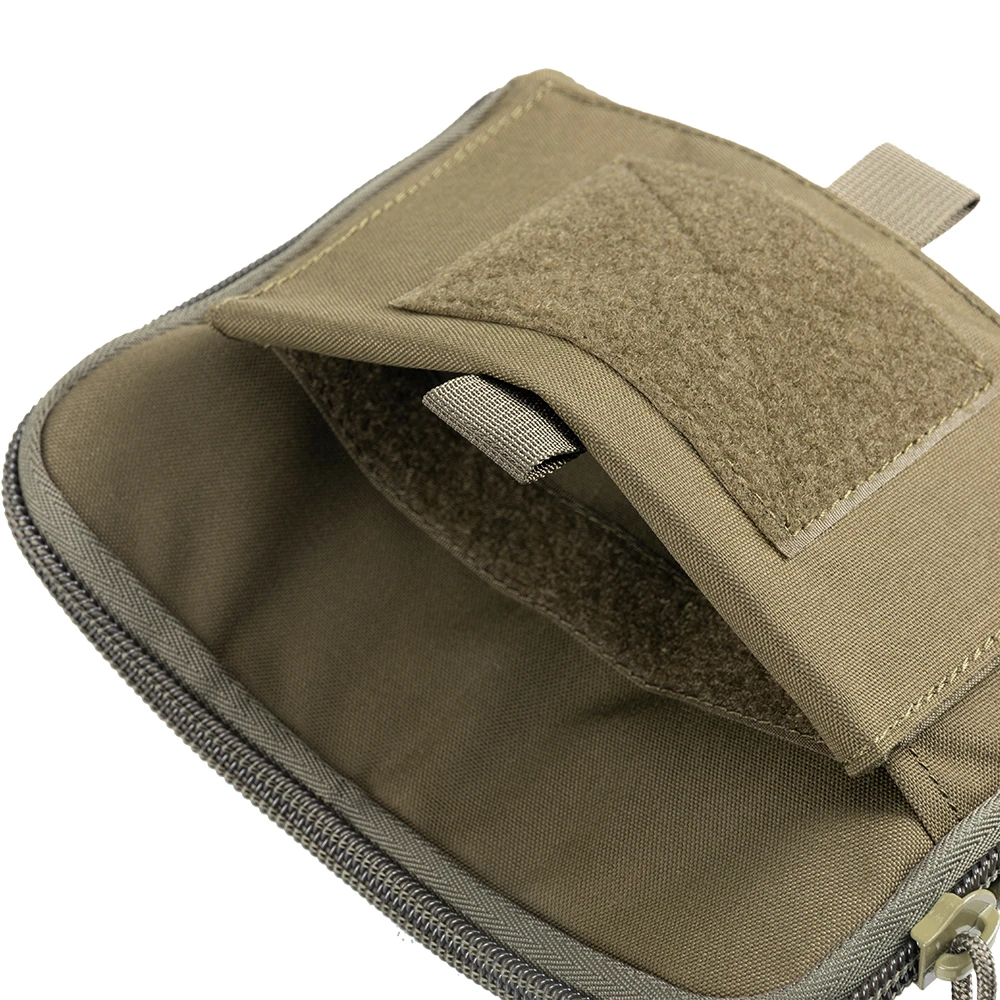 Hecho de nailon Cordura 500D, utiliza cuerda de nailon con doble cremallera YKK. con módulo Molle, se puede colgar en el equipo con módulo Molle, chaleco táctico, mochila, cinturón, etc. El panel de pegatinas mágicas puede pegar la Insignia a su favorito.