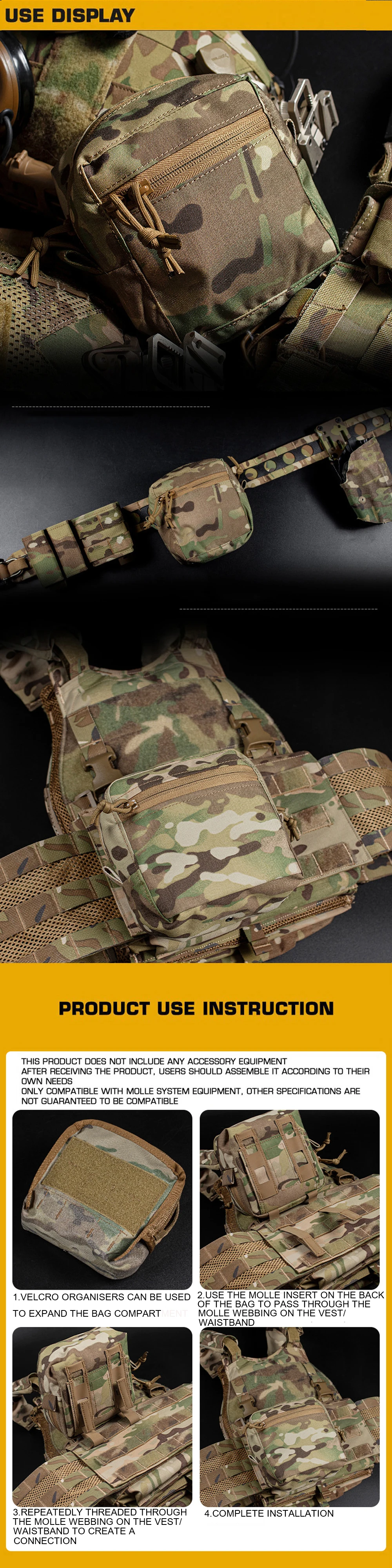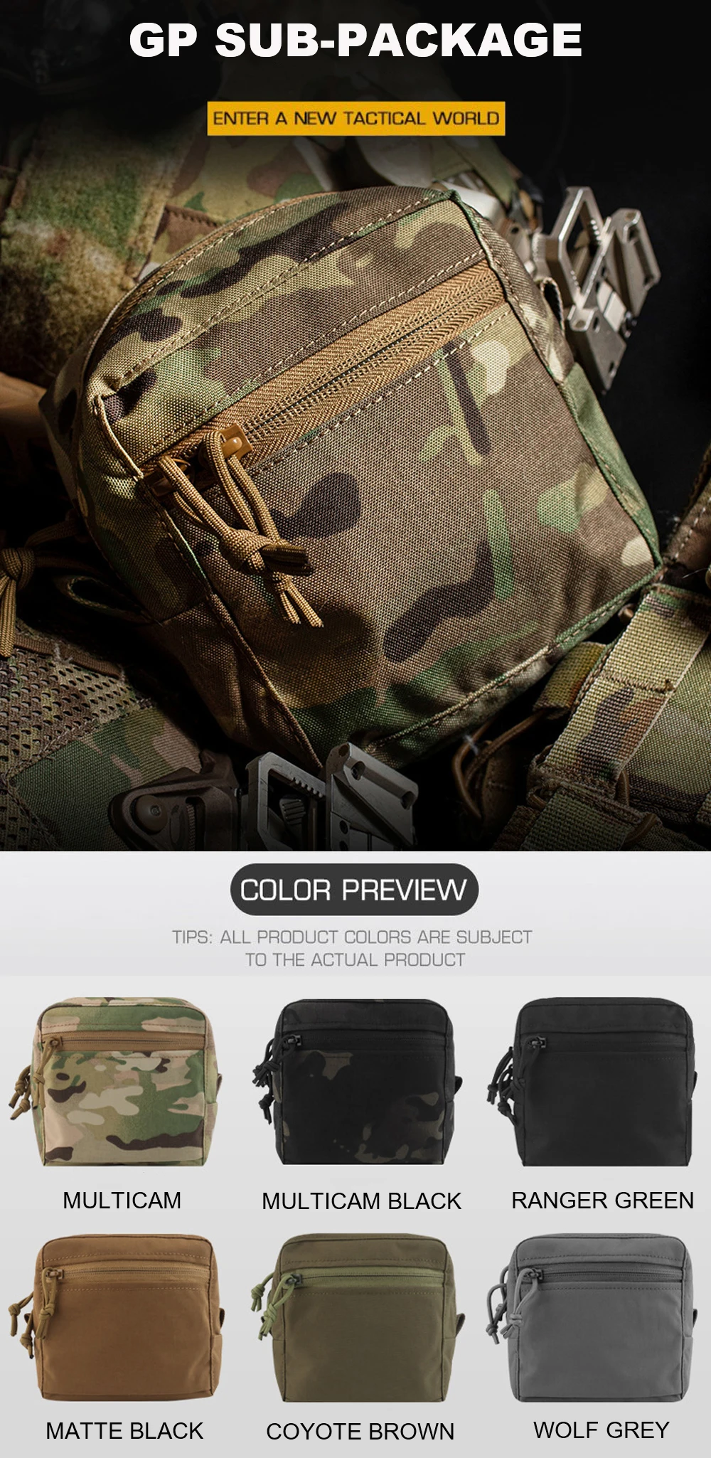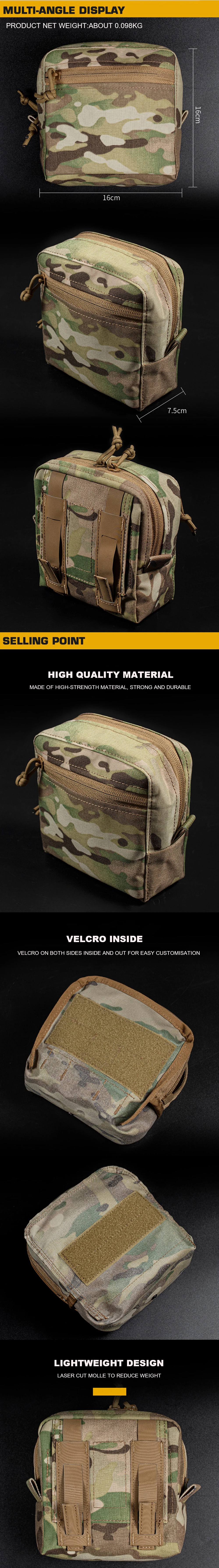 Bolsa táctica Molle GP 6 × 6 YKK, aparejo de pecho con cremallera, chaleco de caza, bolsa, cinturón de combate militar, bolsas, paquete de herramientas de almacenamiento de Paintball Airsoft
