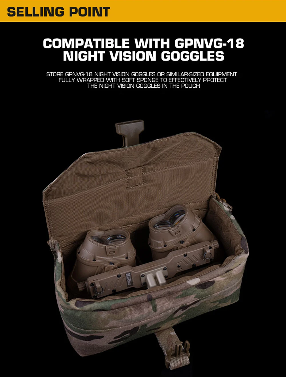 Bolsa táctica MOLLE para GPNVG-18, gafas de visión nocturna, estuche de transporte de almacenamiento, a prueba de golpes, caza al aire libre, combate, equipo de juego Airsoft