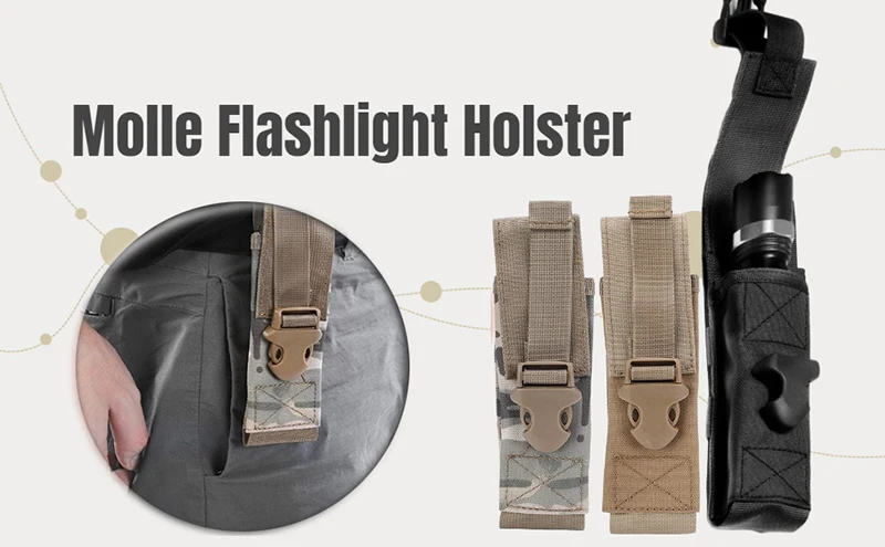 MULTIFUNCIÓN:La bolsa Molle es adecuada para guardar linternas, baterías u otras cosas pequeñas.