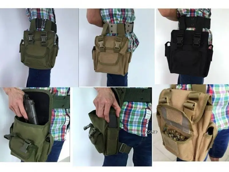 Características:Color: negro/Verde/barroTamaño: longitud de la bolsa de cintura 23*17cmLa longitud máxima del cinturón es de 100cmLa longitud máxima de pierna es de 66cmMaterial: nailonCantidad del paquete: 1 ud.