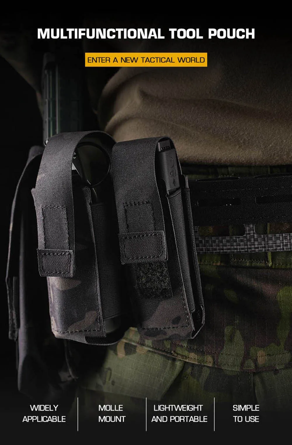 Bolsa táctica MOLLE, ligera, para caza al aire libre, tiro, bolsa para cargador Airsoft, soporte para linterna, funda para cuchillo, equipo de herramientas