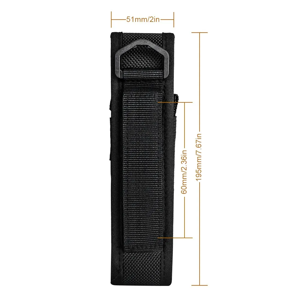 4. Sistema de correas Molle en la parte posterior, puede colocar su funda de linterna compatible con cinturón de cuero o cualquier Correa molle cinturón, chaleco, bolsa, plataforma, mochila, etc.