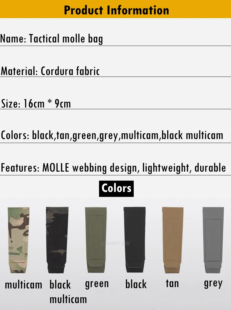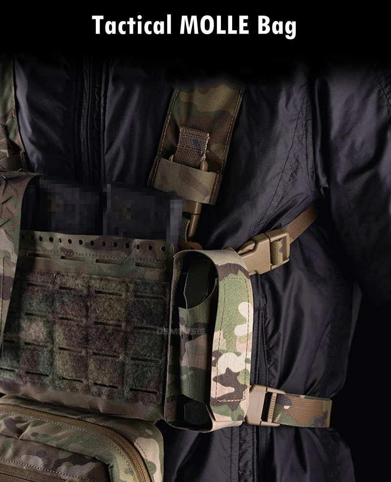 ● Adecuado para el sistema MOLLE. Diseño con correas MOLLE en la parte posterior, se puede instalar en el equipo táctico MOLLE.