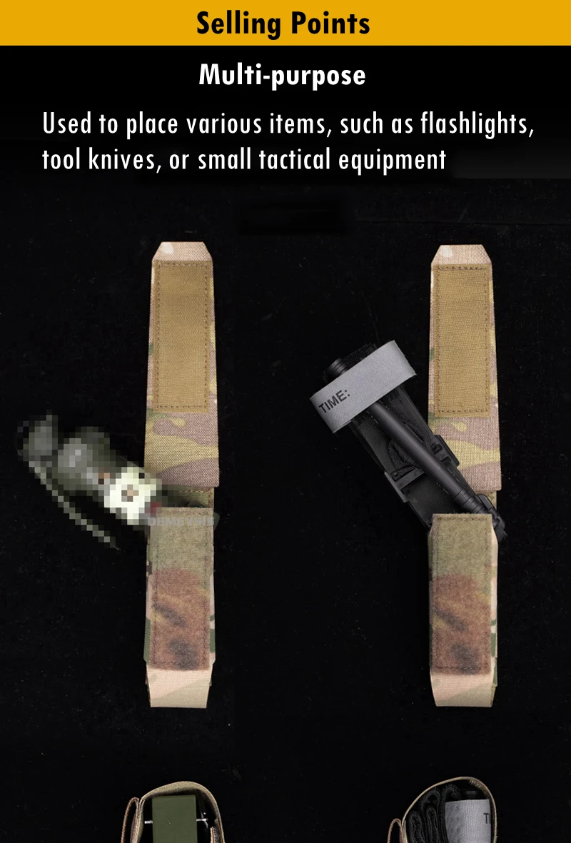 ● Multiusos. Se utiliza para colocar varios artículos, como linternas, cuchillos de herramientas o pequeños equipos tácticos.