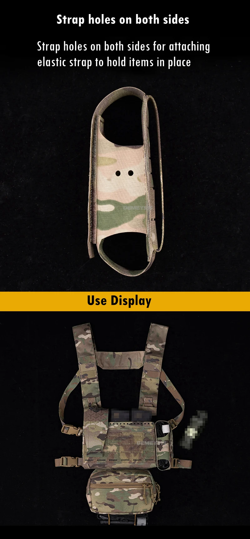 ● Agujeros de correa en ambos lados para sujetar la correa elástica para sujetar los artículos en su lugar.