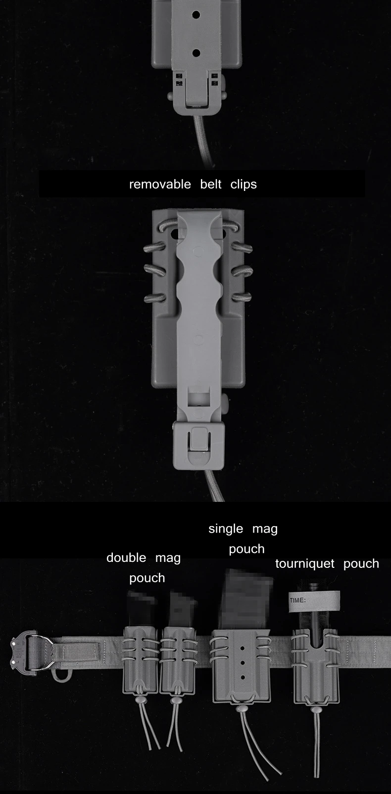 Sistema Molle, para la mayoría de los modelos de chaleco, cinturón, mochila o bolsa;