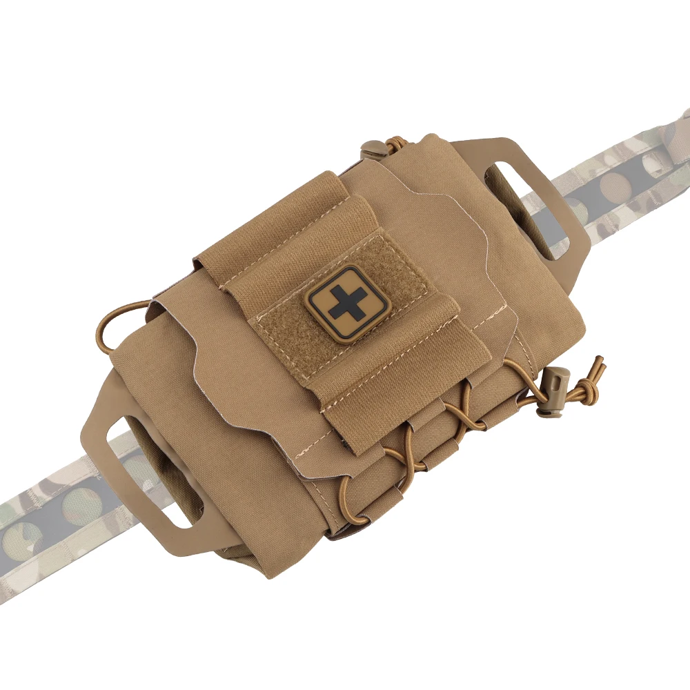 Ganchos y bucles de gamuza y paneles de pegado de gamuza se configuran en el tanque interior y la piel exterior respectivamente.Paneles de bucle en rollo médico y soporte para parches de etiquetas (parche cruzado médico incluido)