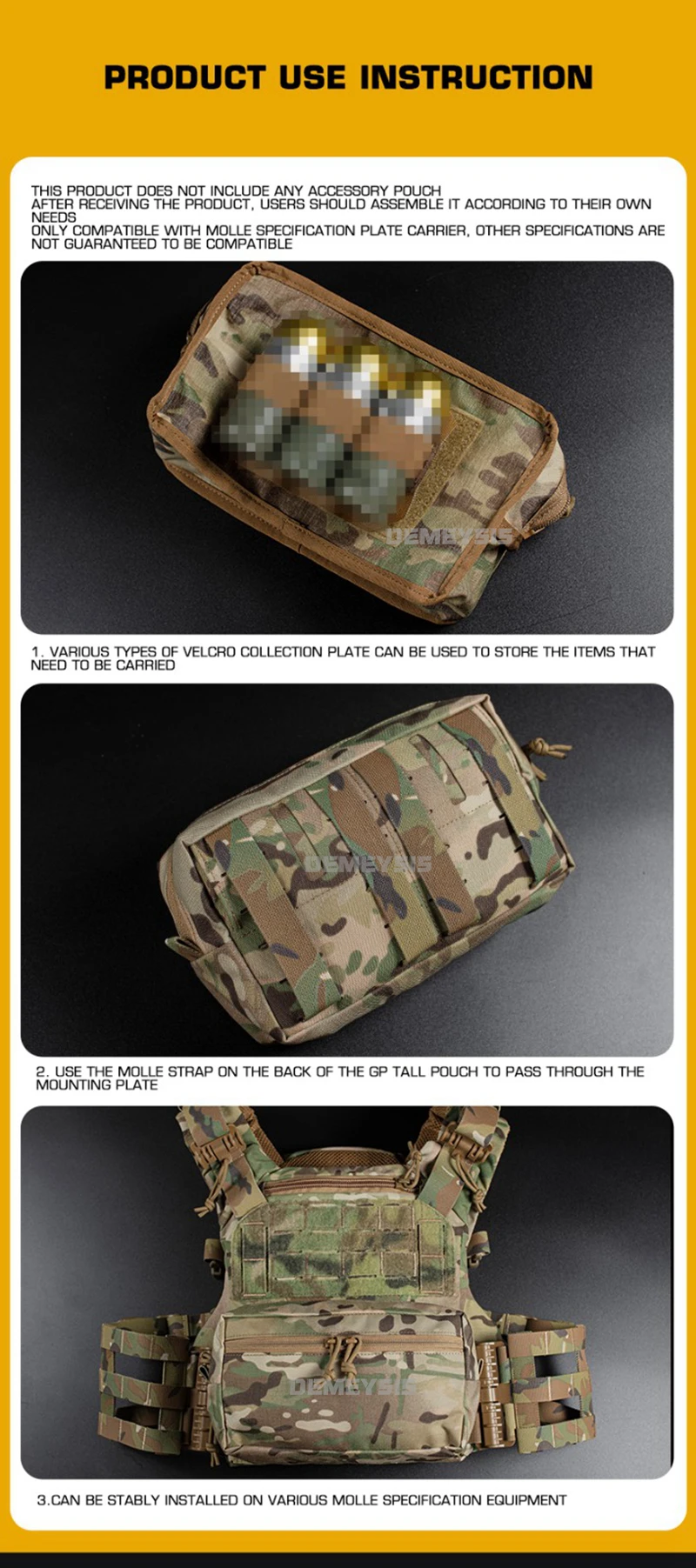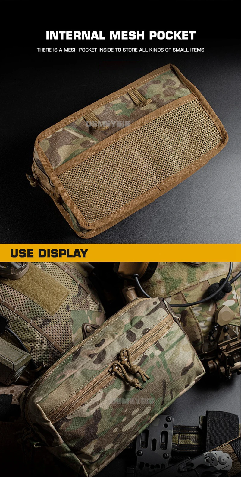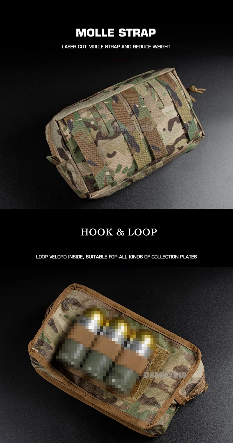 ● Correa Molle, se puede colgar en cualquier chaleco Molle, mochila y cinturones.