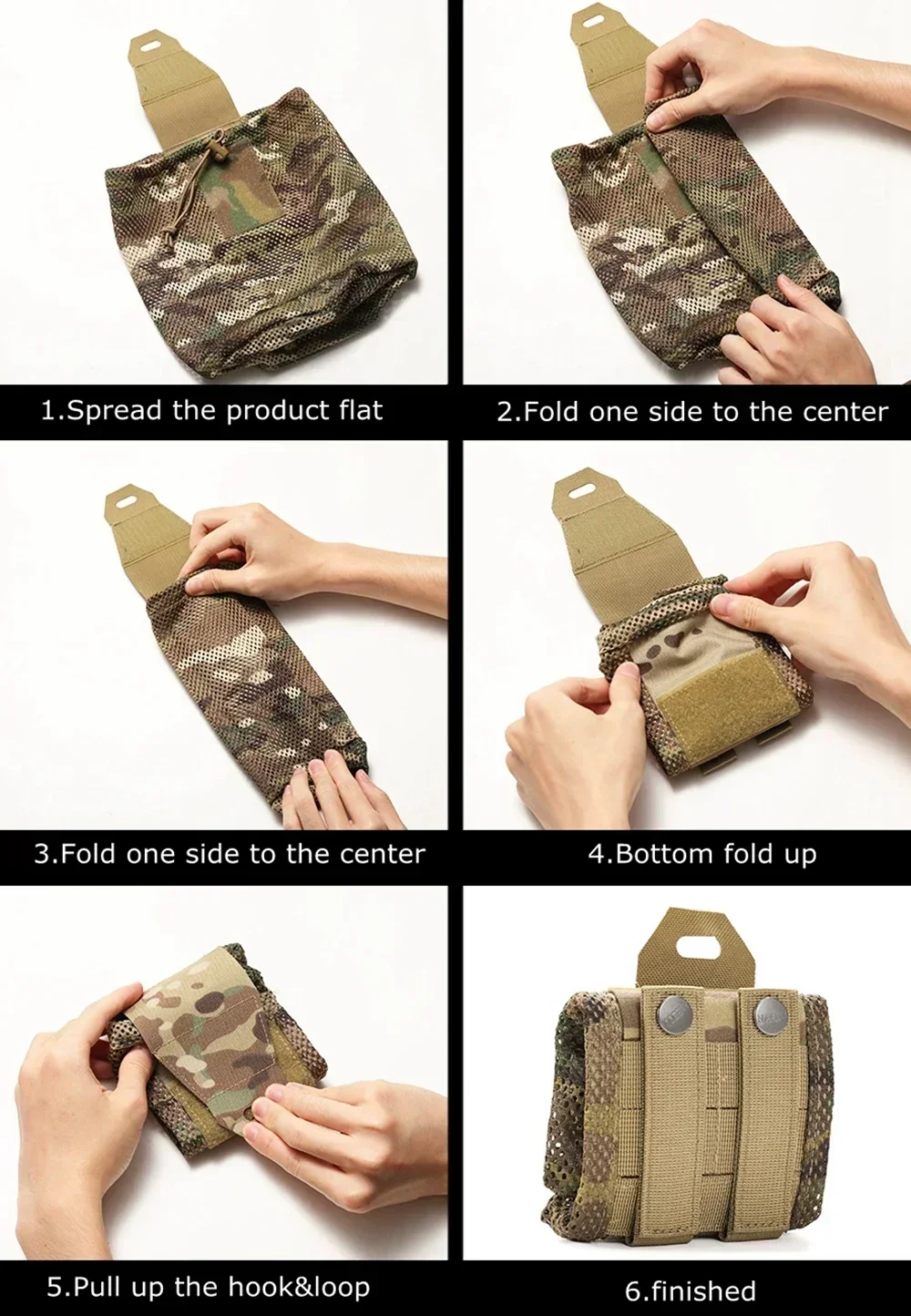 Compatible con MOLLE: Cuenta con módulos MOLLE para una fácil fijación a chalecos, mochilas, cinturones y otros equipos.