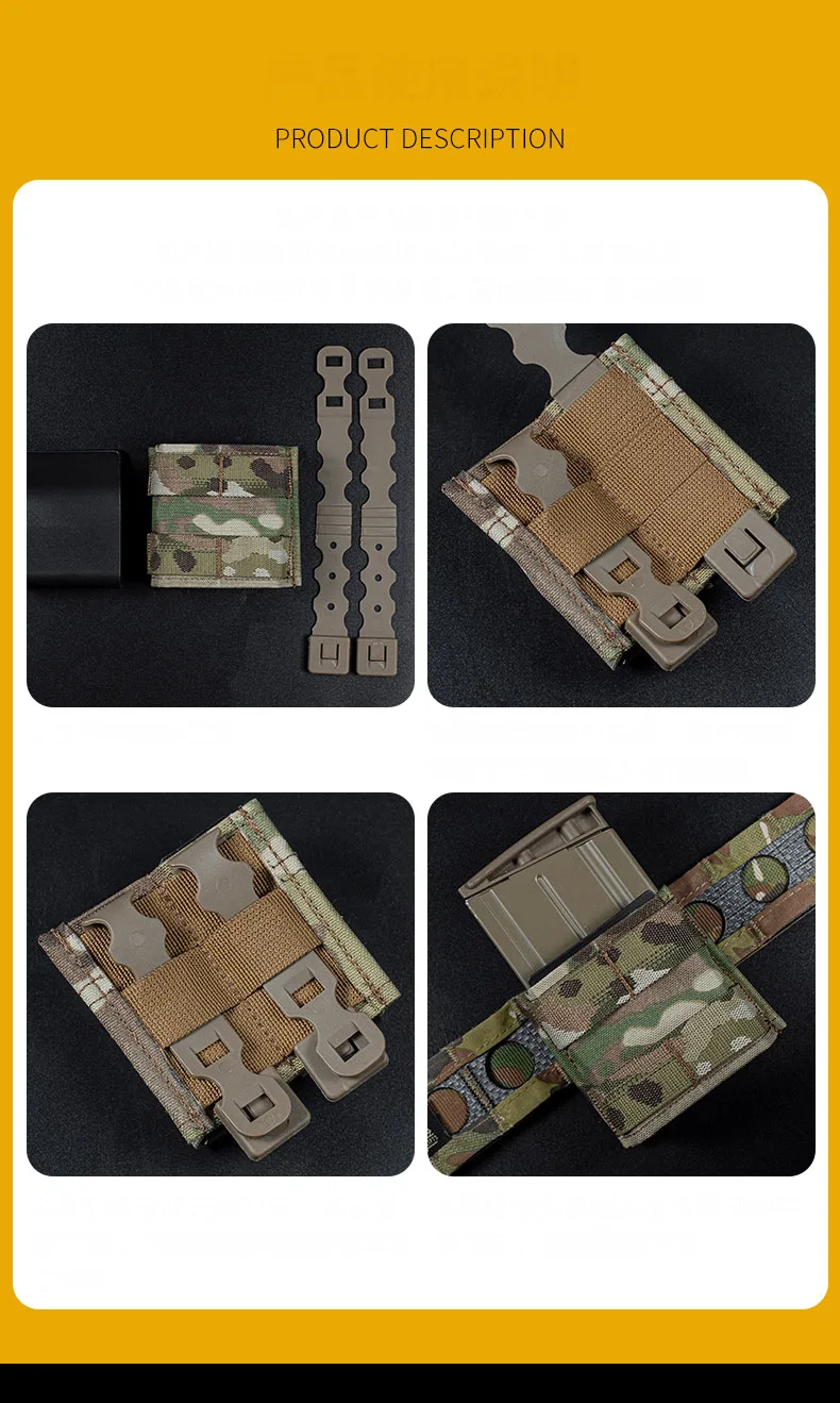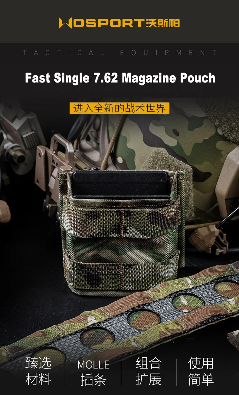 Nombre del producto: FAST 7,62 Single Mag Pouch (corto/mediano/largo) Marca del producto: Wosport N. ° de artículo:/16/18 Embalaje del producto: bolsa empaquetada Peso neto del producto: 0.093KG Peso bruto del producto: 0,1 KG Material principal: tela mate/tela CORDURA
