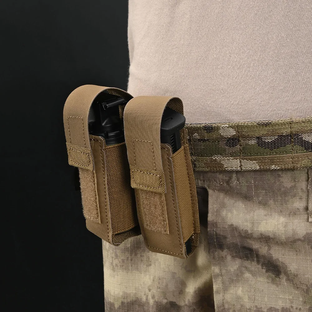 2 La bolsa MOLLE tiene tela elástica en ambos lados: la tela elástica se adapta a cualquier forma del contenido y se fija en su lugar.La funda rociadora de pimienta MOLLE se puede utilizar no solo como soporte rociador OC sino también como bolsa para granadas aturadas M84, bolsa flashbang, soporte táctico para radio de mano pequeña y bolsa para cargador de 9 mm.