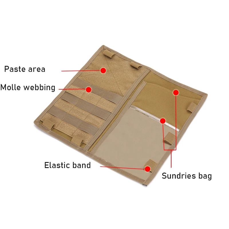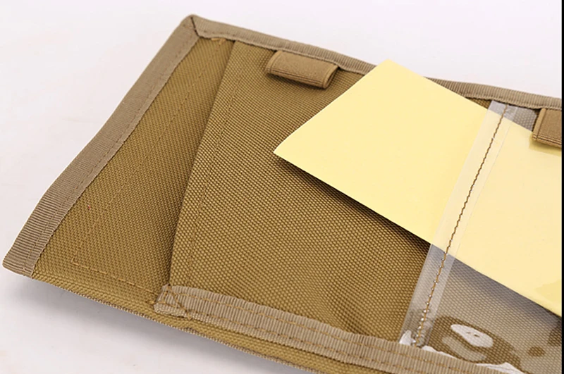 5,1 bolsillos con cierre detrás del campo de bucle se pueden utilizar como soporte de documentos para todas sus licencias importantes, permisos, tarjetas de identificación e información de registro/seguro.