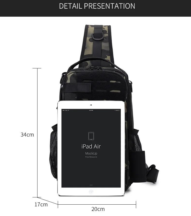 Con su diseño táctico, esta bolsa es perfecta para practicar senderismo, cazar y pescar, ya que brinda fácil acceso a sus suministros.