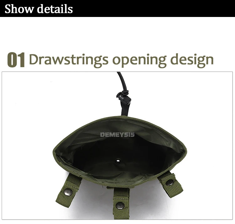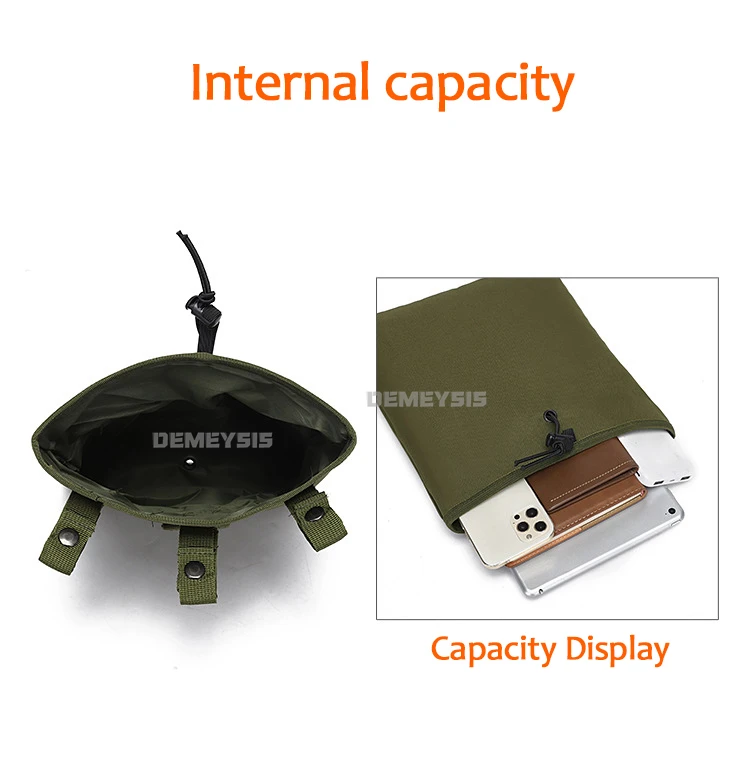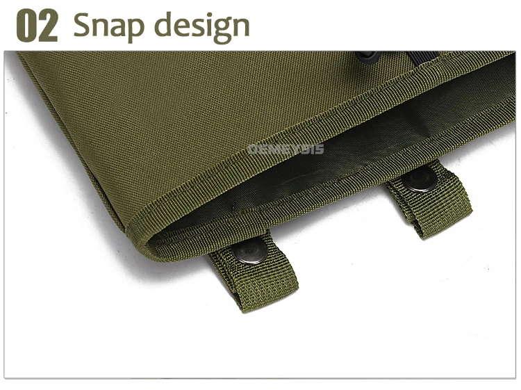 2.Sistema Molle y diseño de gancho y bucle, se puede utilizar en el cinturón o el chaleco.