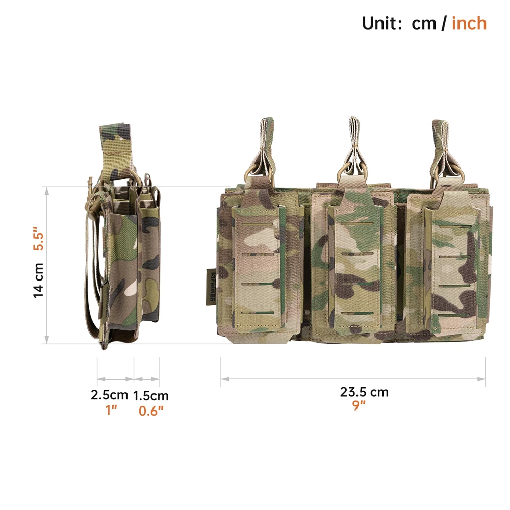 DISEÑO ESPECIAL: El diseño abierto con diseño de tiradores elásticos puede acceder rápida y fácilmente a sus revistas. Adecuado para magzines M4, M16, 5,56, AR233, AR-15, AK AR, varios tamaños de revistas