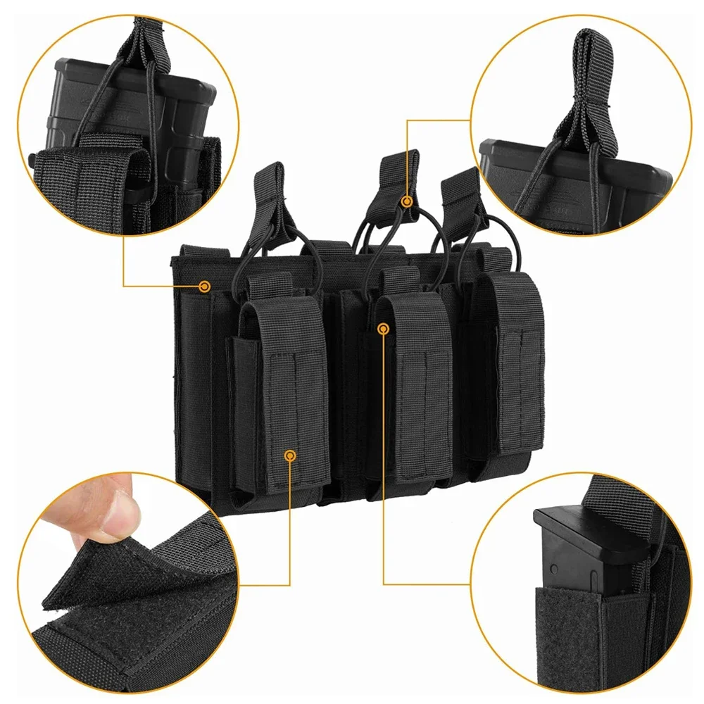 2.Bolsa para cargadores de rifle para guardar la mayoría de 556 cargadores de rifle como cargadores de rifles tipo AK, M4, M16 y AR.Bolsas para cargadores de pistola para guardar cargadores Glock, M1911 y 92F, etc.