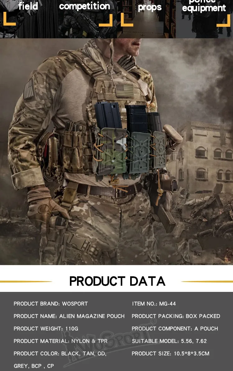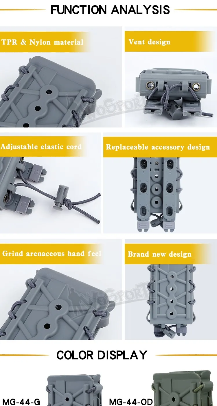 Correas Molle en la parte posterior, capaces de acoplarse al chaleco molle, cinturón molle, bolsa de herramientas molle o mochila molle.
