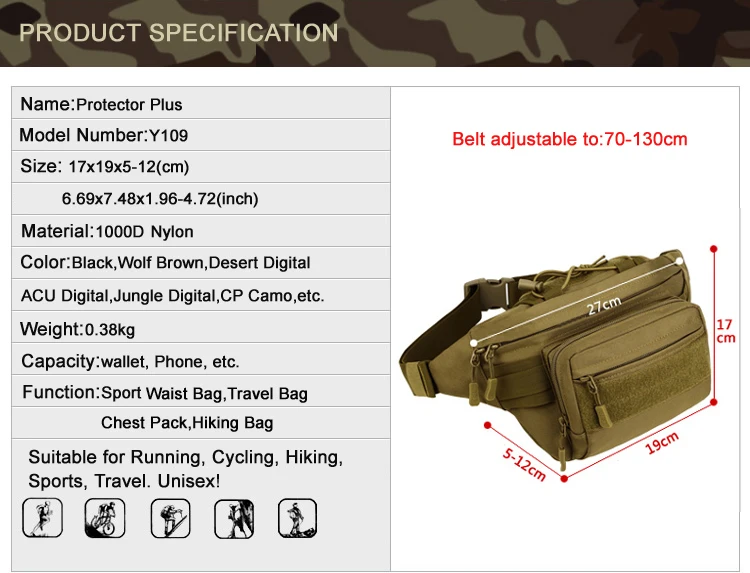 Con un sistema táctico Molle, esta riñonera ofrece opciones de fijación versátiles para su equipo.