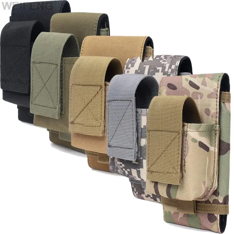 Diseño para sostener teléfonos móviles más grandes de 5 pulgadas, se puede usar en el cinturón y se puede conectar al chaleco de cincha MOLLE, mochila, plataforma... etc.