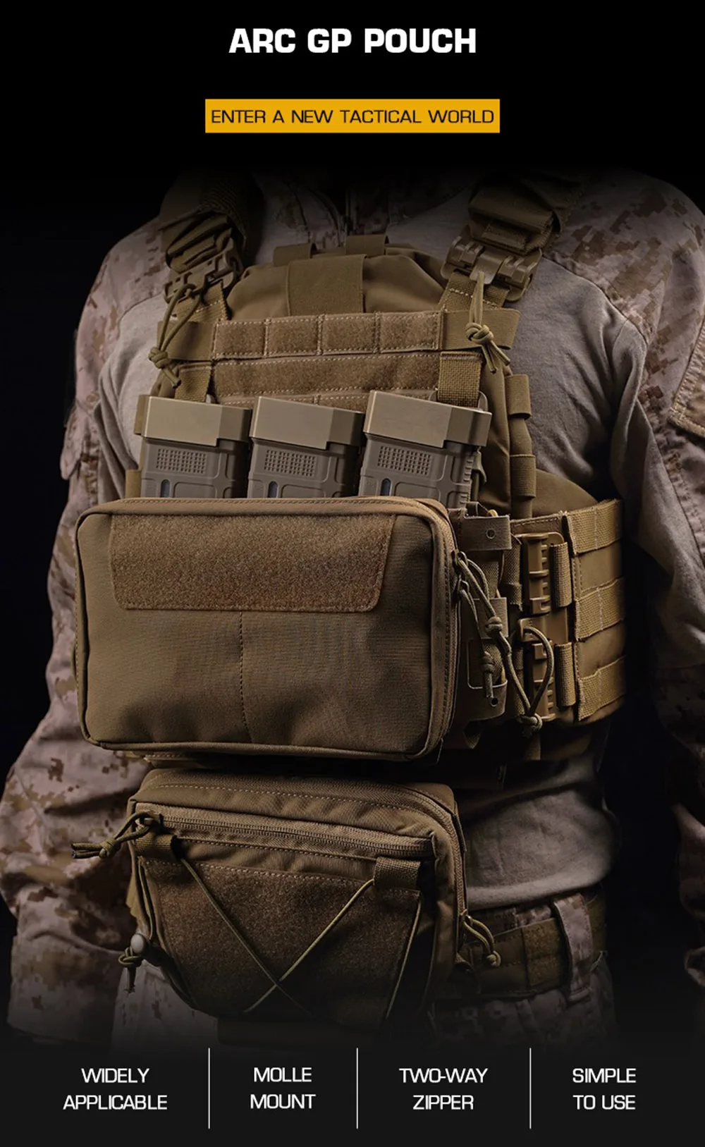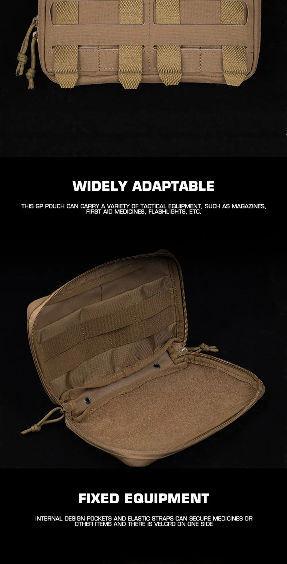 Tactical Medium Horizontal GP Pouch ARC MOLLE General Purpose Bag Tactical Plate Carrier Vest Front IFAK Tool Storage Bag