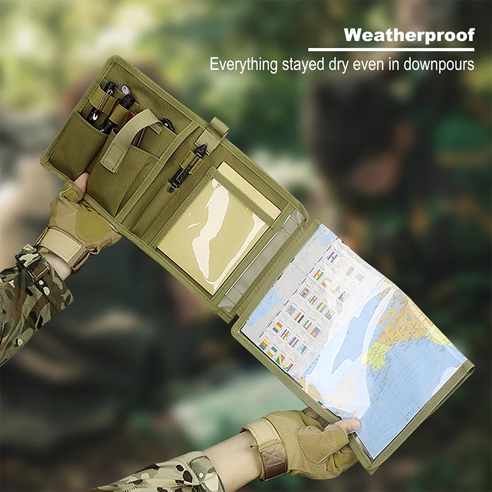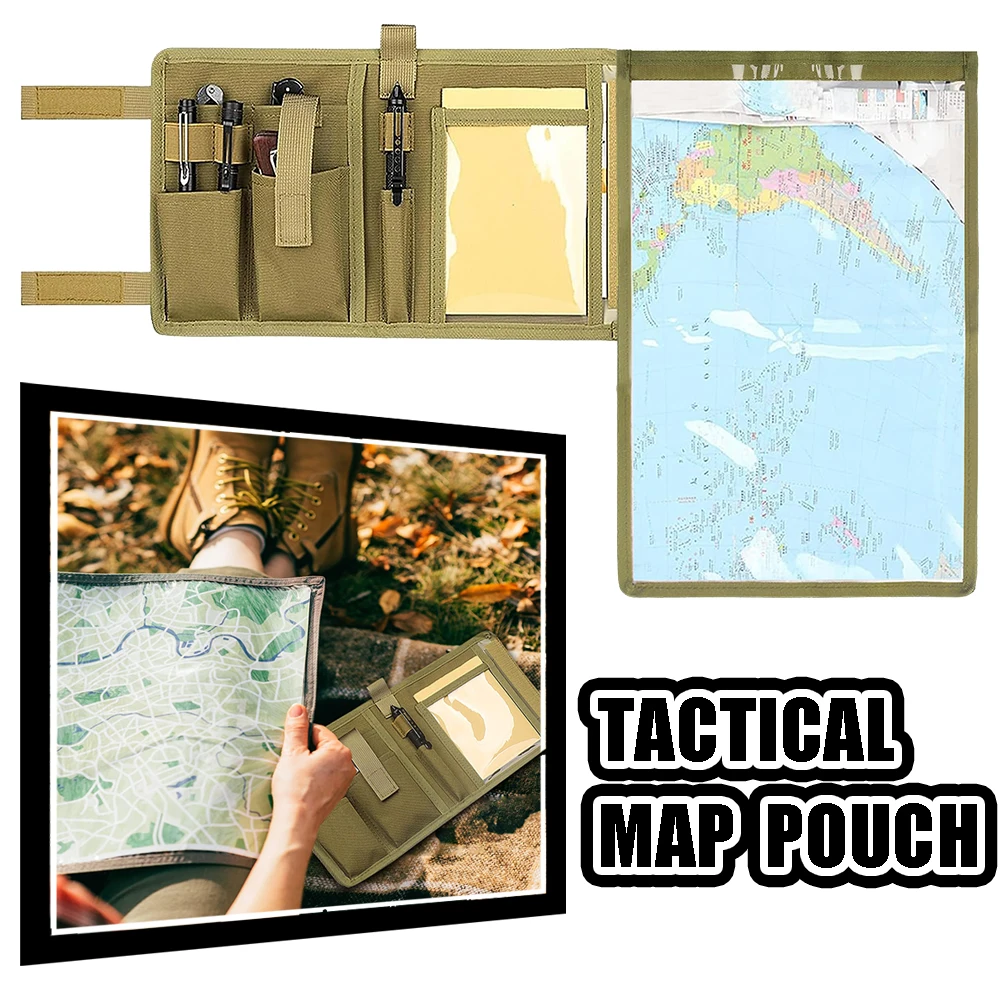 Bolsa táctica multifuncional para mapas con soporte para herramientas EDC Bolsa de almacenamiento protectora para mapas plegable con ventana transparente Estuche para mapas resistente a la intemperie