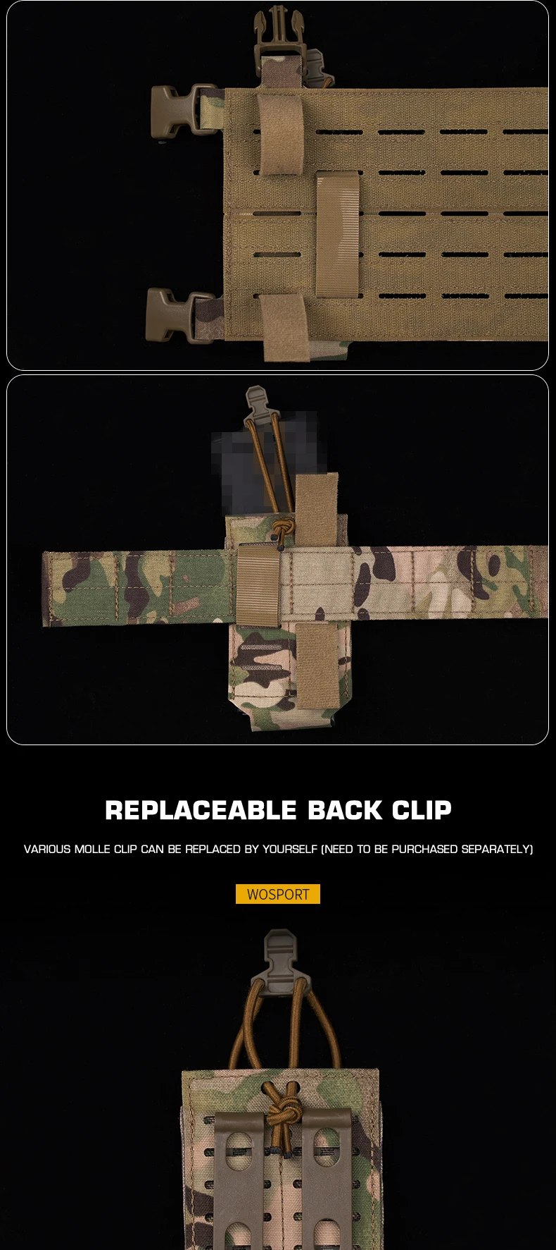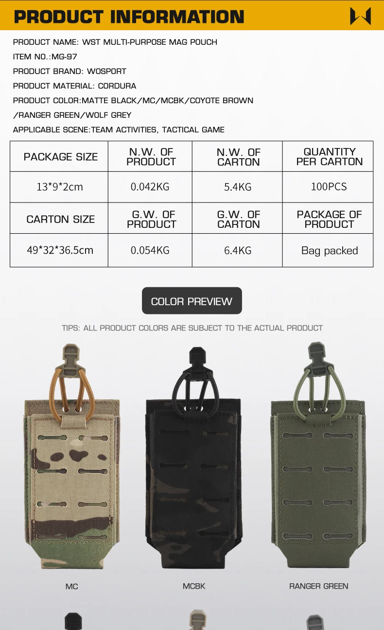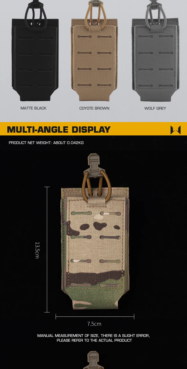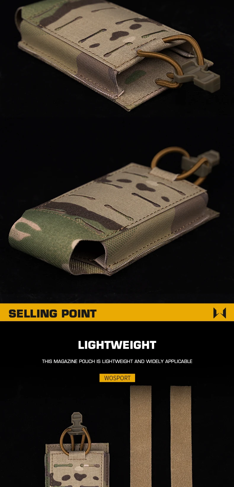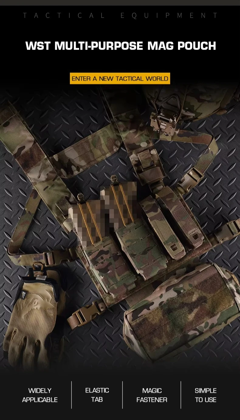 Bolsa táctica multifuncional WST con cierre de cordón elástico, múltiples opciones de montaje adecuadas para revistas de 5,56 MM