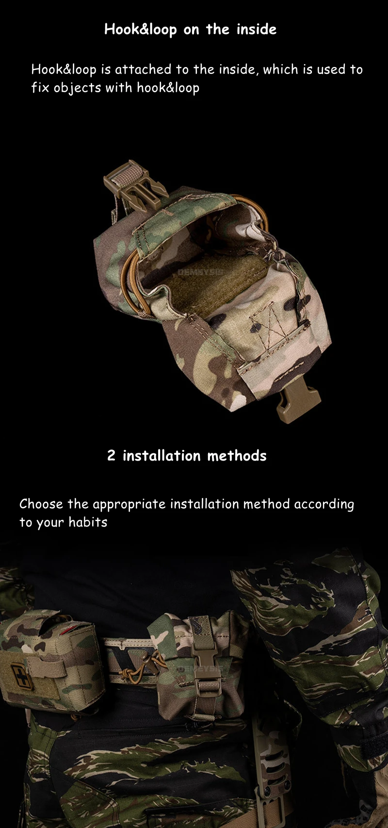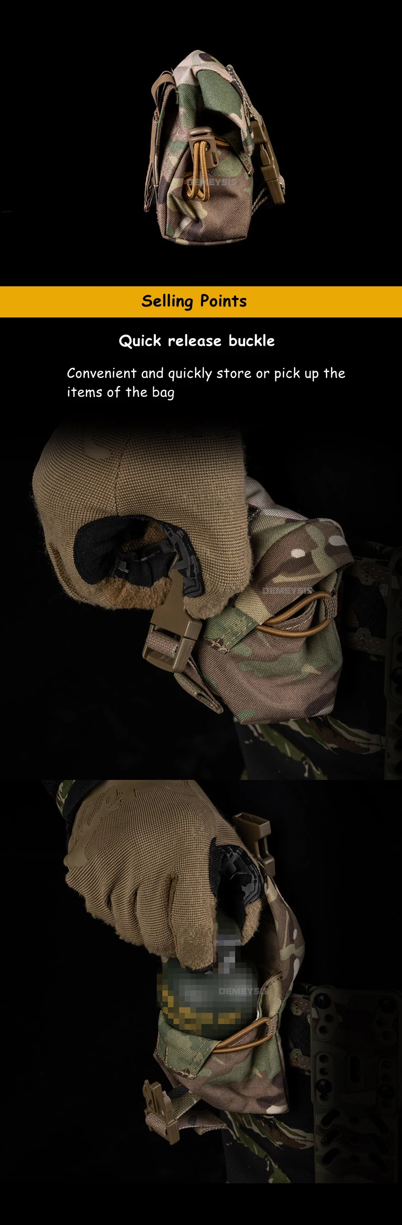 ⚡ Hebilla de liberación rápida – Acceso con una sola mano para granadas/herramientas M67