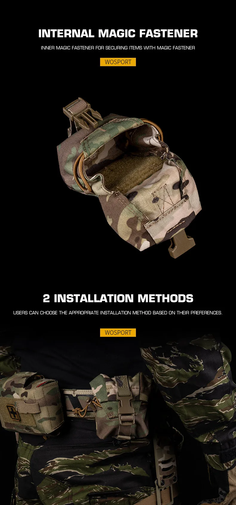 2 métodos de instalación Bolsa M67 multifuncional con correas MOLLE para accesorios de caza