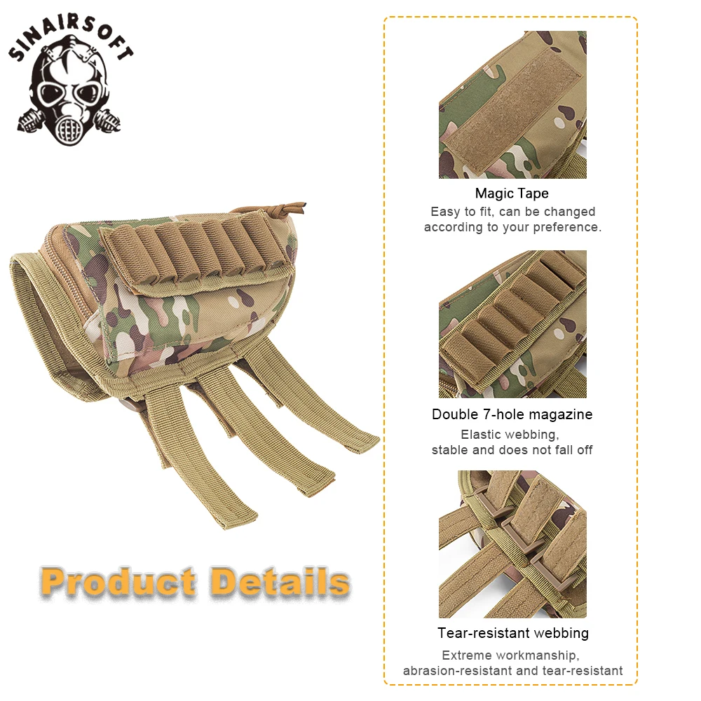 Bolsa táctica para munición con almohadilla para mejillas para Rifle, bolsa ajustable para paquete de culata con bolsillo magnético y soporte para carcasa, tiro de caza SINAIRSOFT