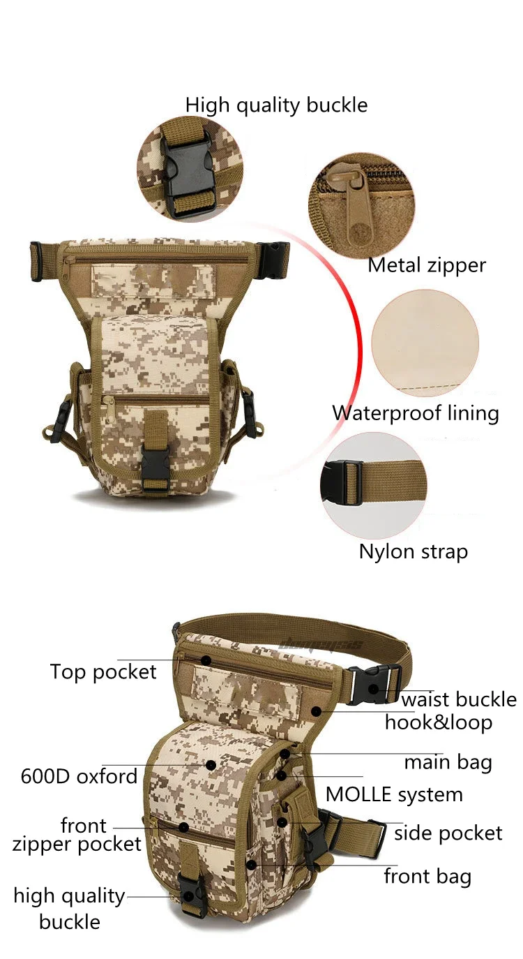 Táctica militar Bolsa de muslo Bolsa de sillín Molle multifuncional Equipo de Montañismo al aire libre Equipo de caza militar