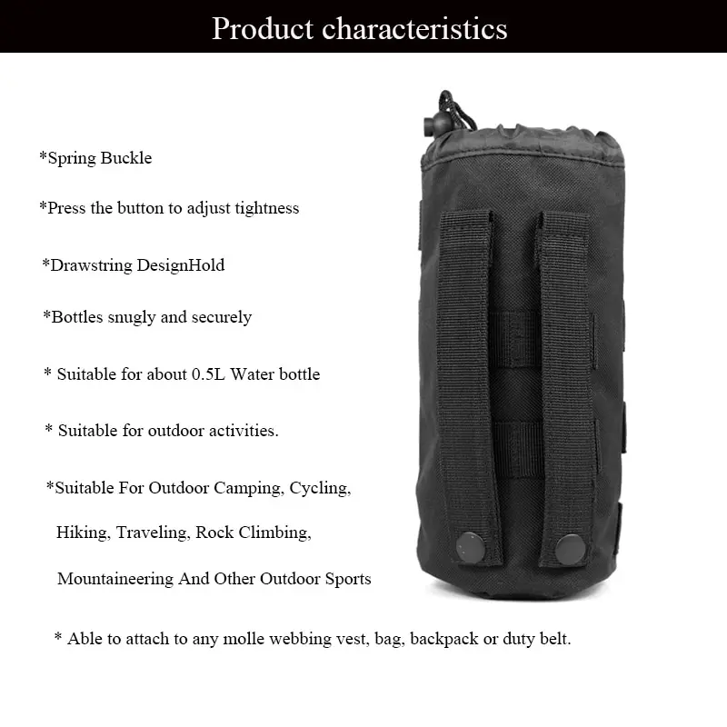 • Diseño multifuncional:Esta bolsa de botella de agua está diseñada para ser multifuncional, lo que le permite utilizarla para diversas actividades al aire libre.