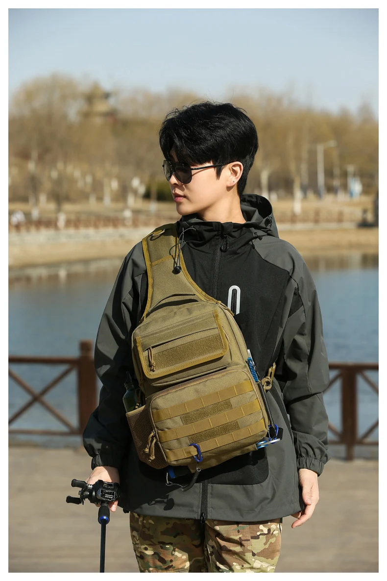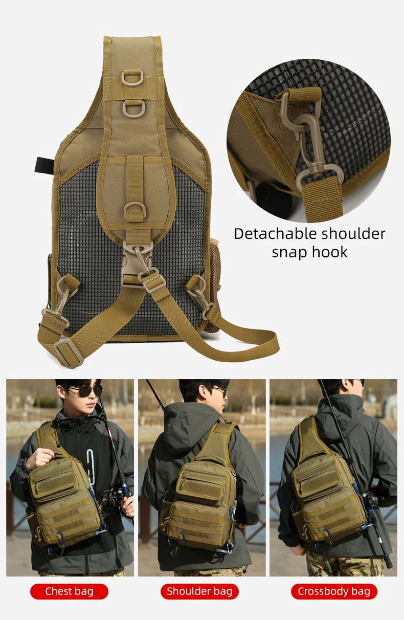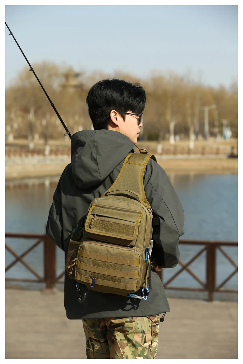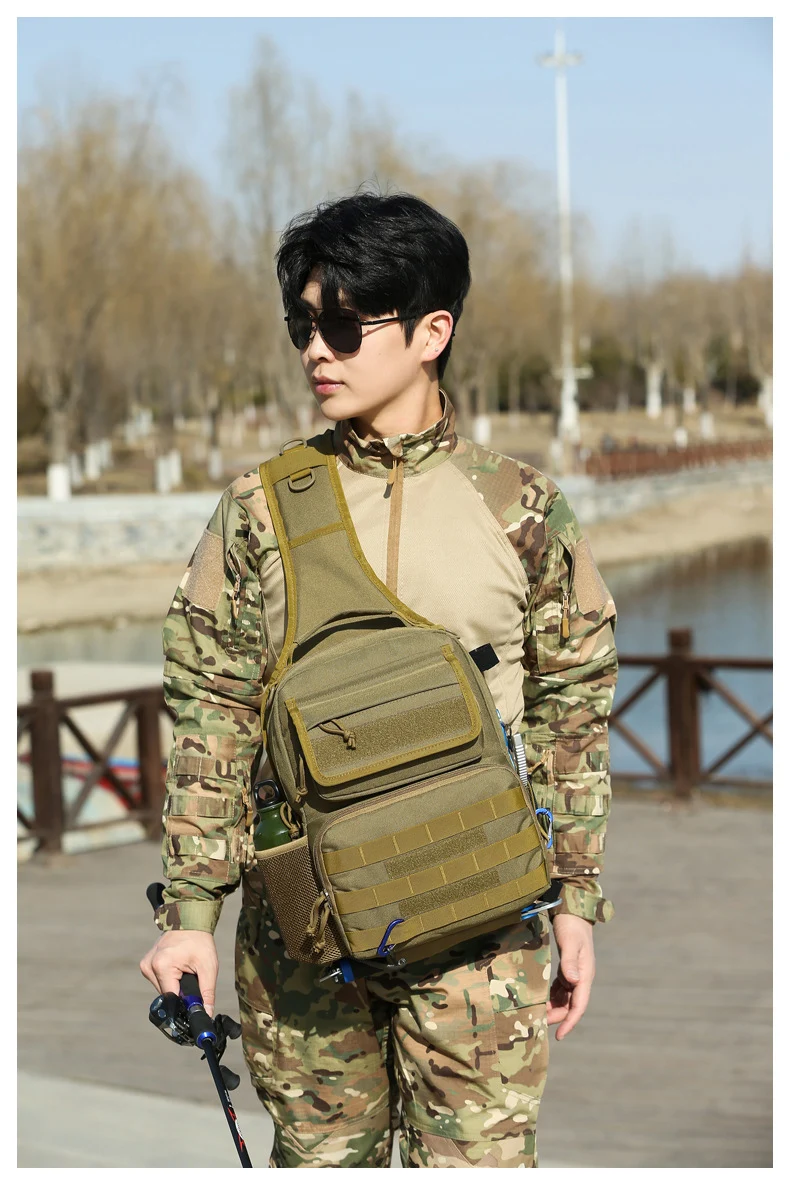 Bolsa táctica de pecho para escalada con soporte para caña, gran capacidad, señuelo para exteriores, pesca, ciclismo, caza, Camping, bolsos de hombro tipo bandolera