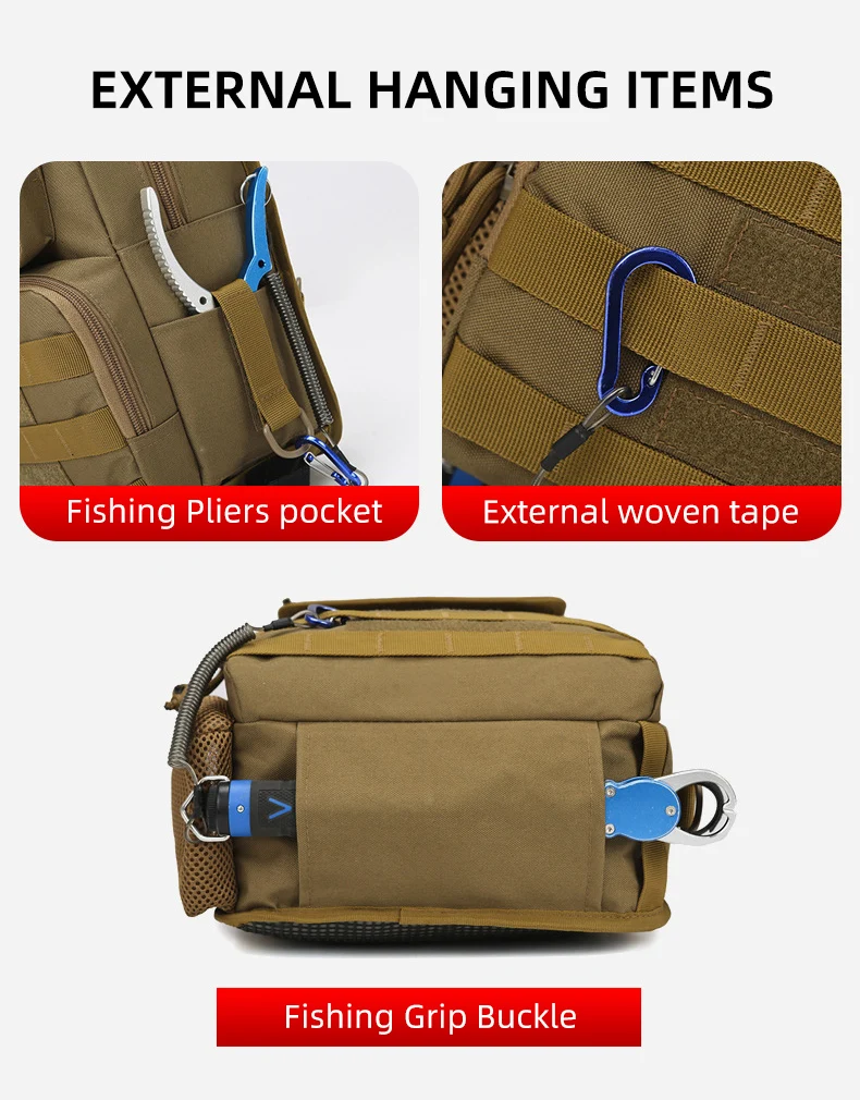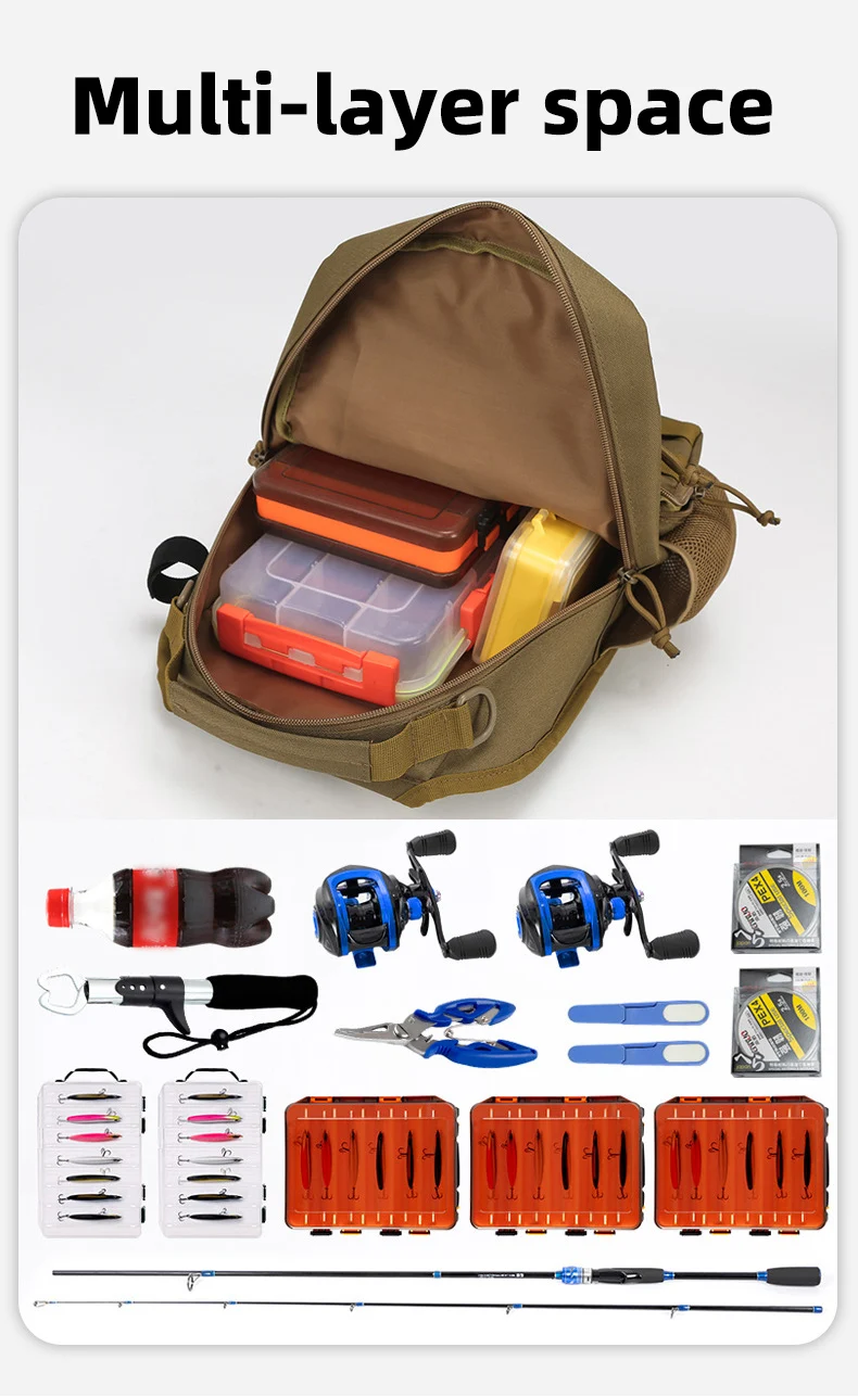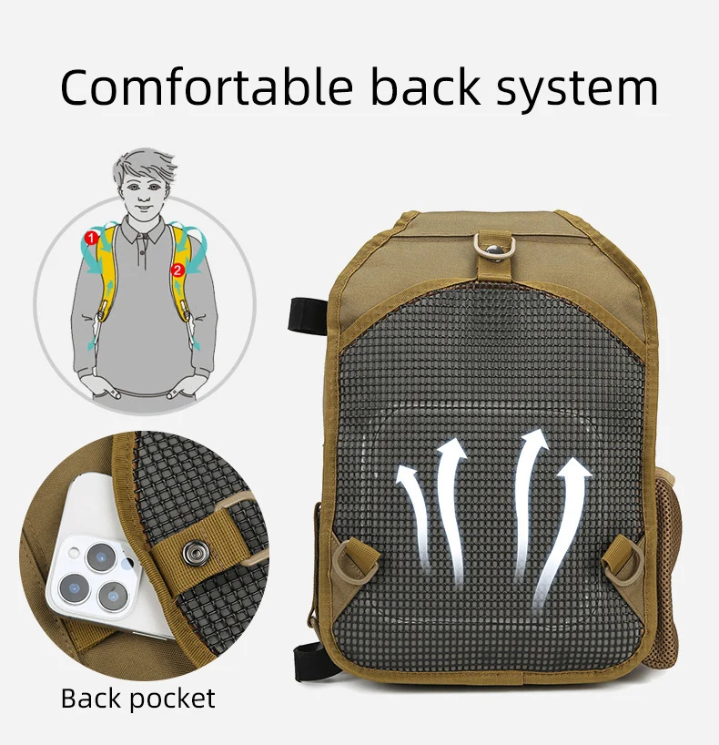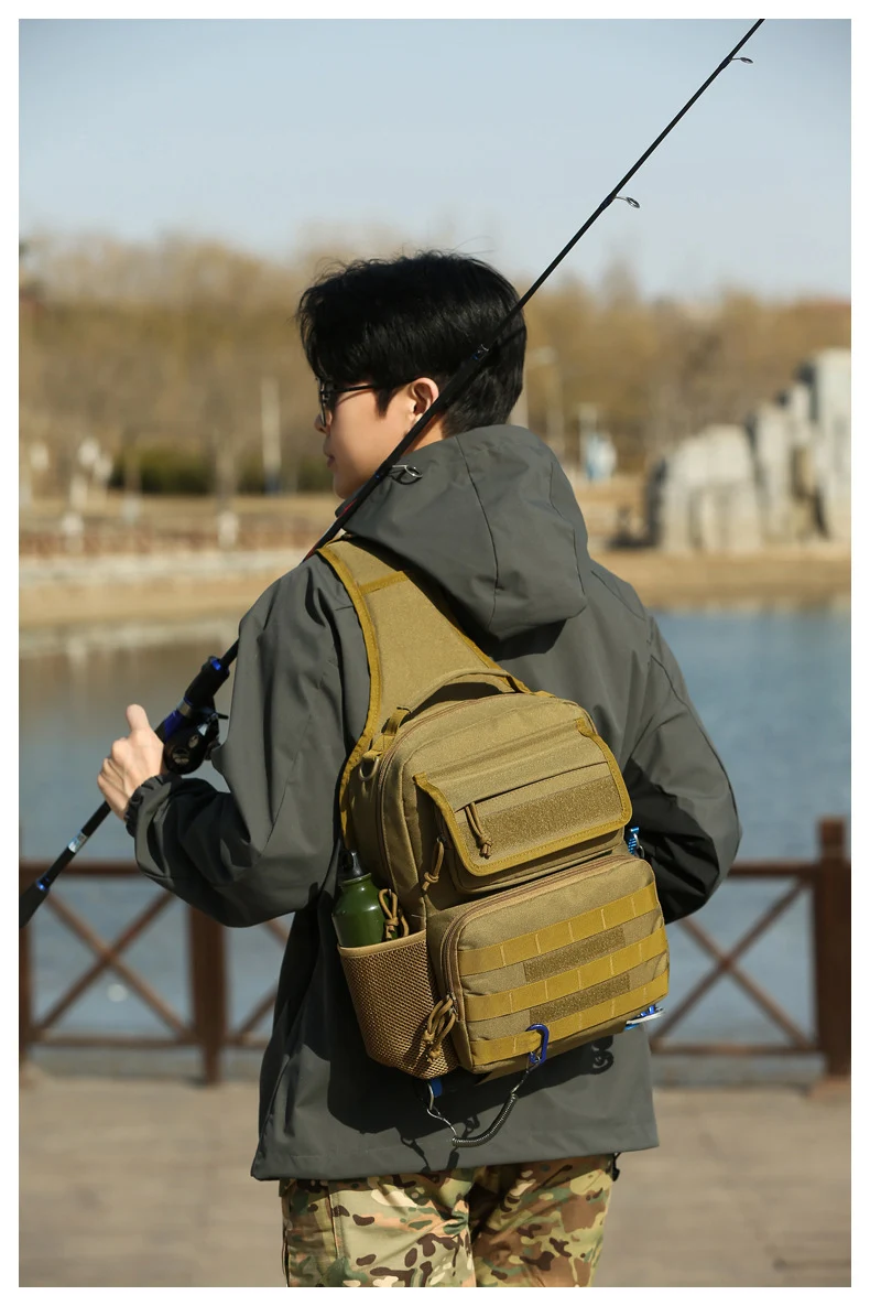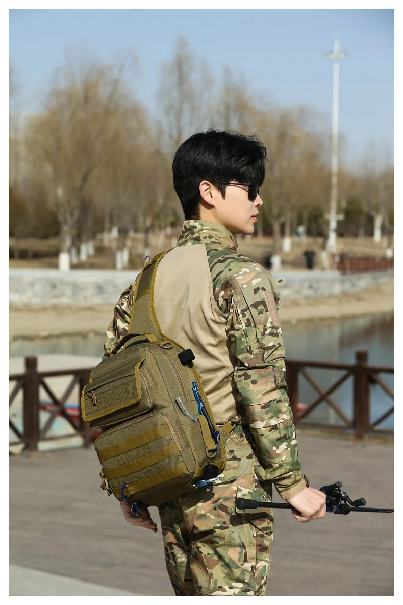 Bolsa táctica de pecho para escalada con soporte para caña, gran capacidad, señuelo para exteriores, pesca, ciclismo, caza, Camping, bolsos de hombro tipo bandolera